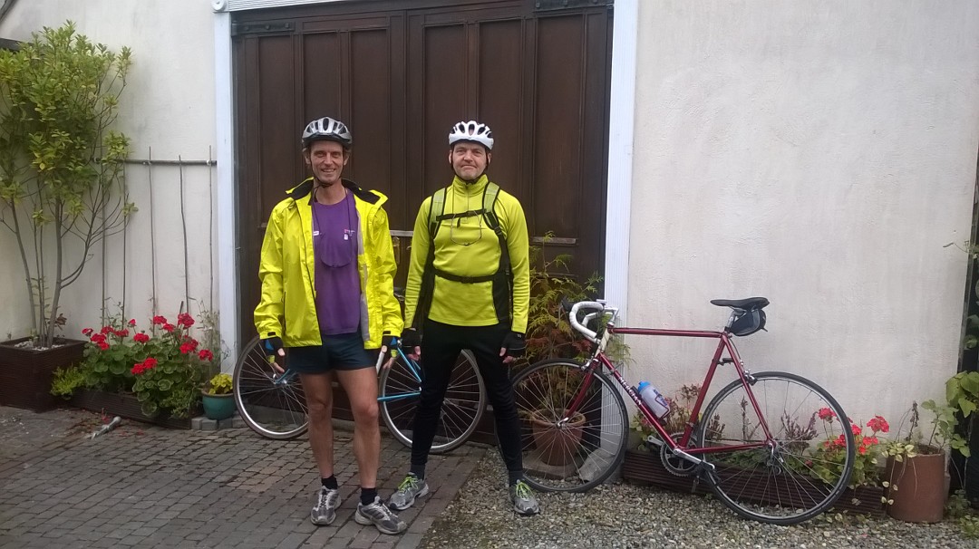 Robert joined Saoirse and I earlier this year in Athy for triathlons of various lengths. I was able to get my Olympic out of the way in the morning when the weather was fine, but they had to hang around all day waiting for their events and the weather had turned a little nasty; the wind kicked up, and the clouds rolled over. Having done a couple of Sprints already, I was trying carry off an air of the consummate veteran; for the guys, it was their first outing. Now, Robert has signed up for another Sprint back in Italy this weekend coming, so he was keen to get in some late training. I did point out that this was supposed to be a rest week, but I gather he has not done any structured training anyway, so why change now. May as well continue to buck the trend!