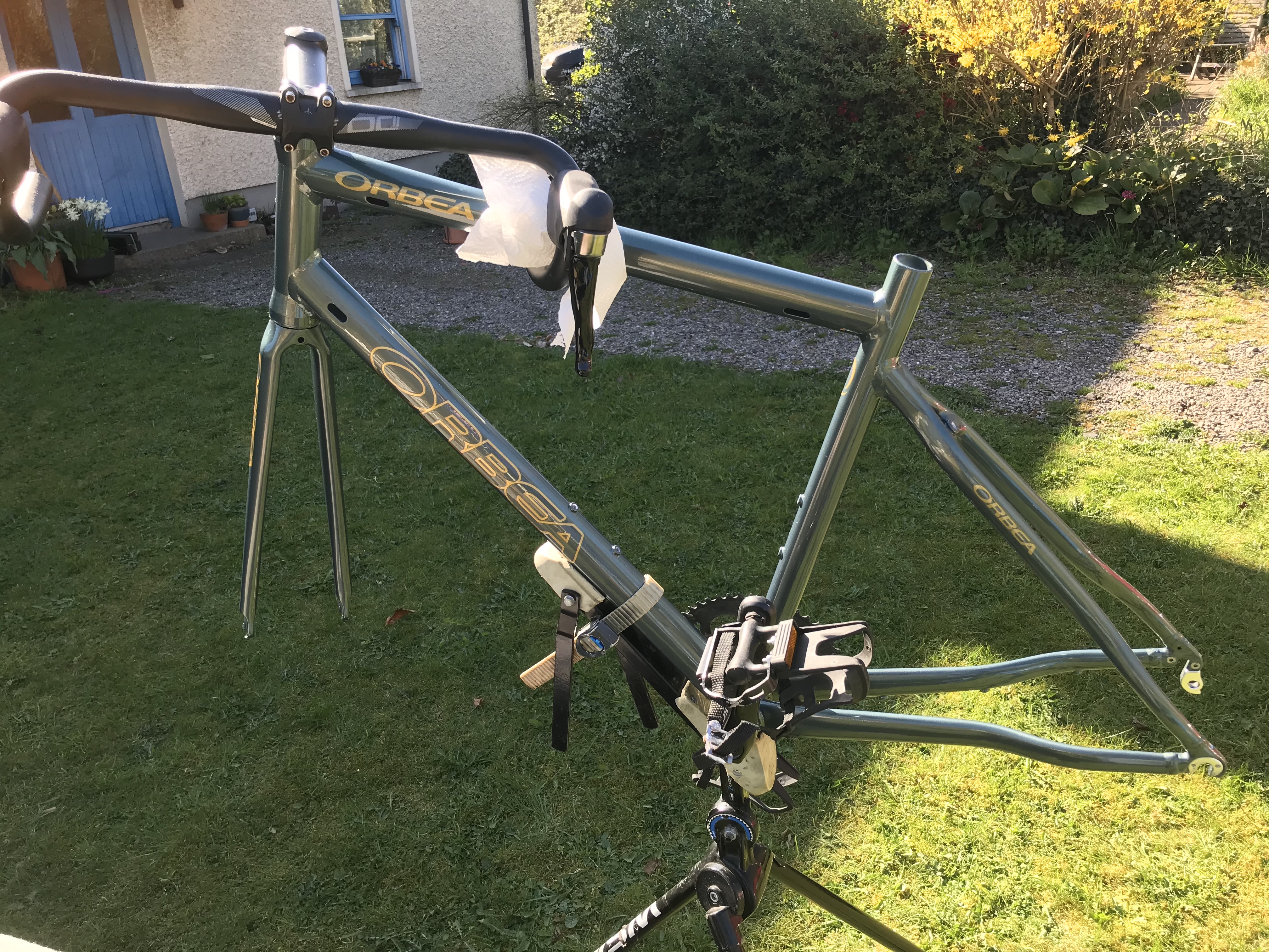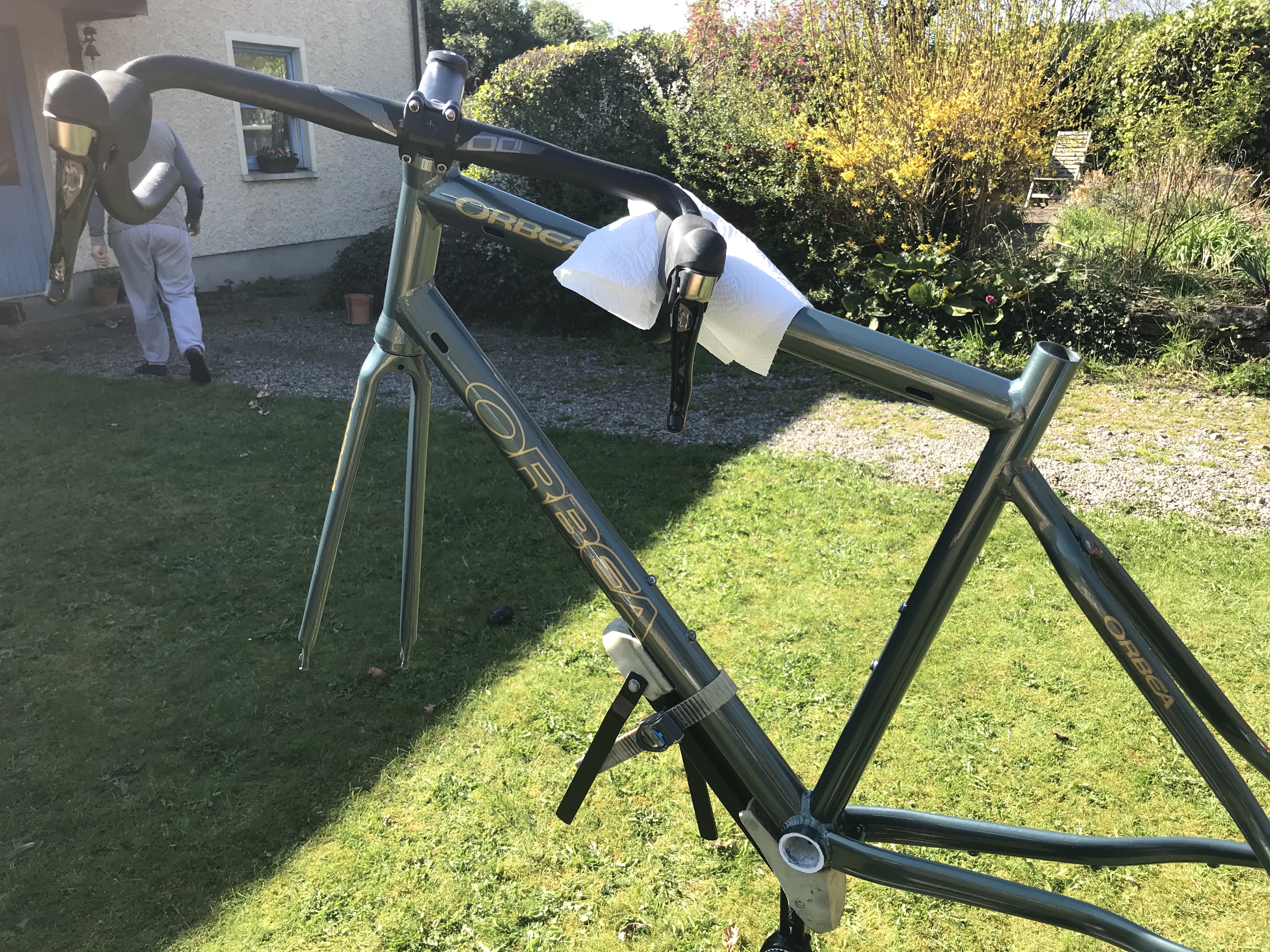 Just to recap, for the newcomers here who don’t avidly follow this blog and all the subtle minutiae of my life: well into our third lockdown, I had the urge to take on a project. This usually involves painting something. We had already done the more mundane sort: hall, sitting room, bathroom. Now it was something a little more personal and challenging. I decided to strip my Orbea Avant road bike and give it a brand new livery.