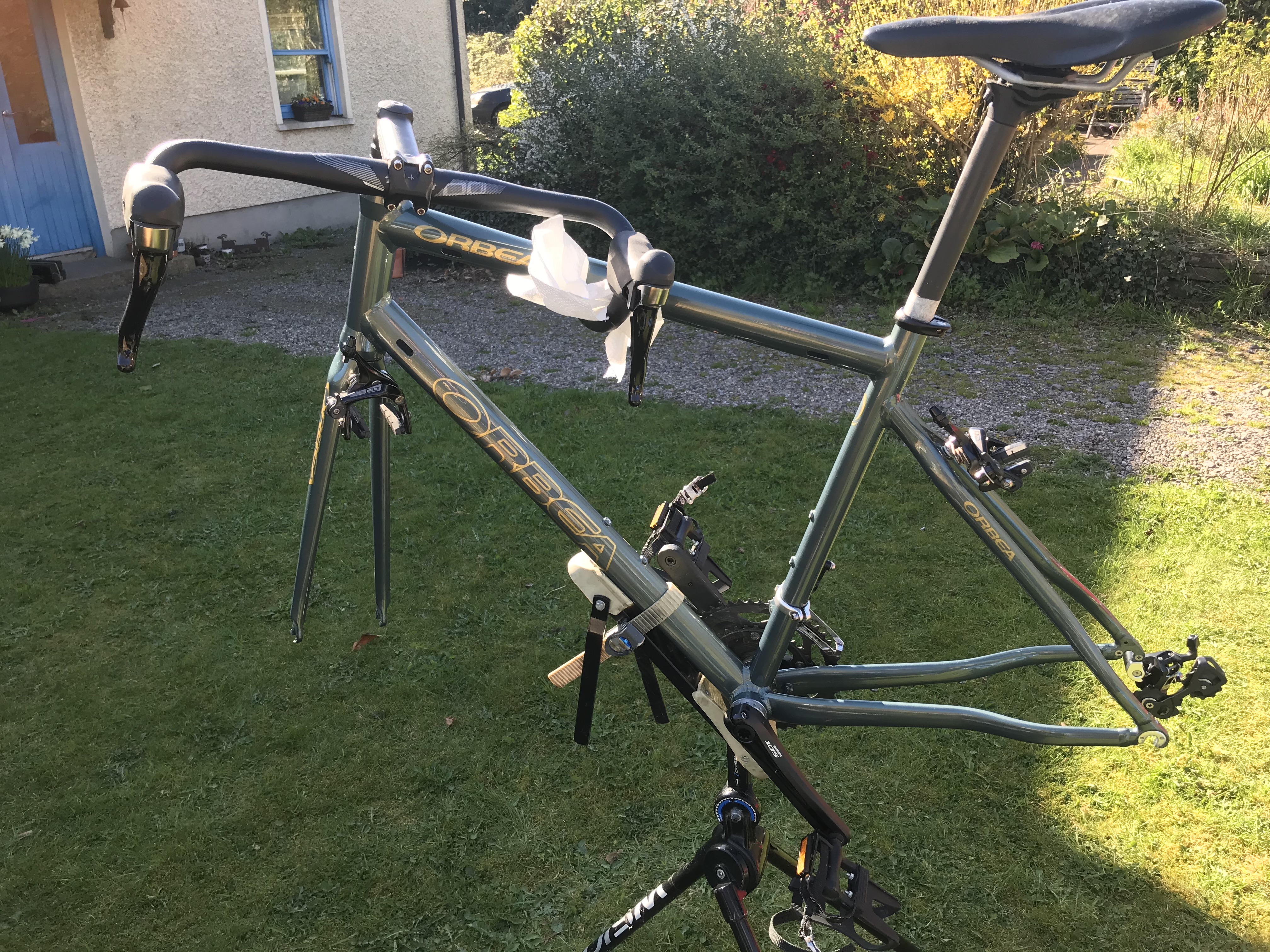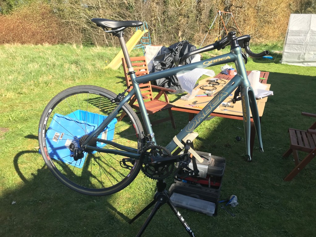I overdid it on the decals. Two ‘Orbeas’ probably would have been enough, but damn, it’s hard to stop sticking them things on when you have a sheet of them. What isn’t there now is the name (H40 Avant) but that’s okay. Even from the shop, as new, it was a bit of a bastardisation. They sold it me as a 105, but that model comes with Tiagra, so they agreed to up the spec and fit the 105 gears. So it’s halfway between a H40 and a H30. And no, they don’t make a H35!