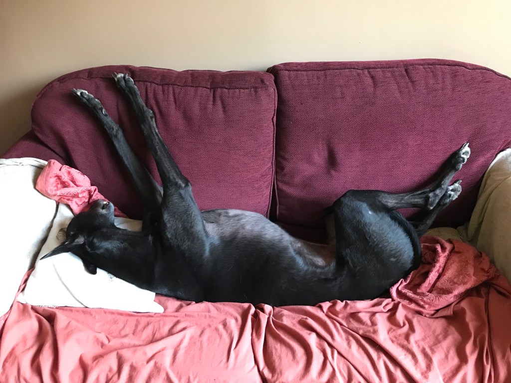 And we’ll sign off with a picture of Odi, because, well, because he’s Odi. And he cares not for football. Or feathers. Or any of that nonsense. He likes to run, pee, sniff and eat. But mostly he likes to sleep. What a life.