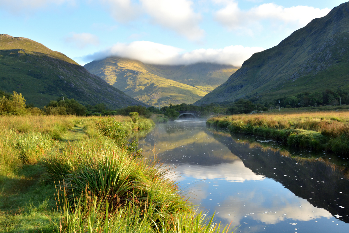 I was awake far too early for my breakfast slot, so I took my good camera and slipped out to the Bundoragha River in front of the hotel. There was a gentle mist rising over the water, and the sun was peeking around the mountain tops. It was, by any measure, a beautiful morning. After breakfast and a detour to the spa for a whistle stop tour of the jacuzzi, steam room and sauna, plus a deluxe seaweed essence bath, I checked out and headed up to Doo Lough Valley and took some more photos. Along with a few from Sheeffry Pass, here are a collection of pics from the trip: