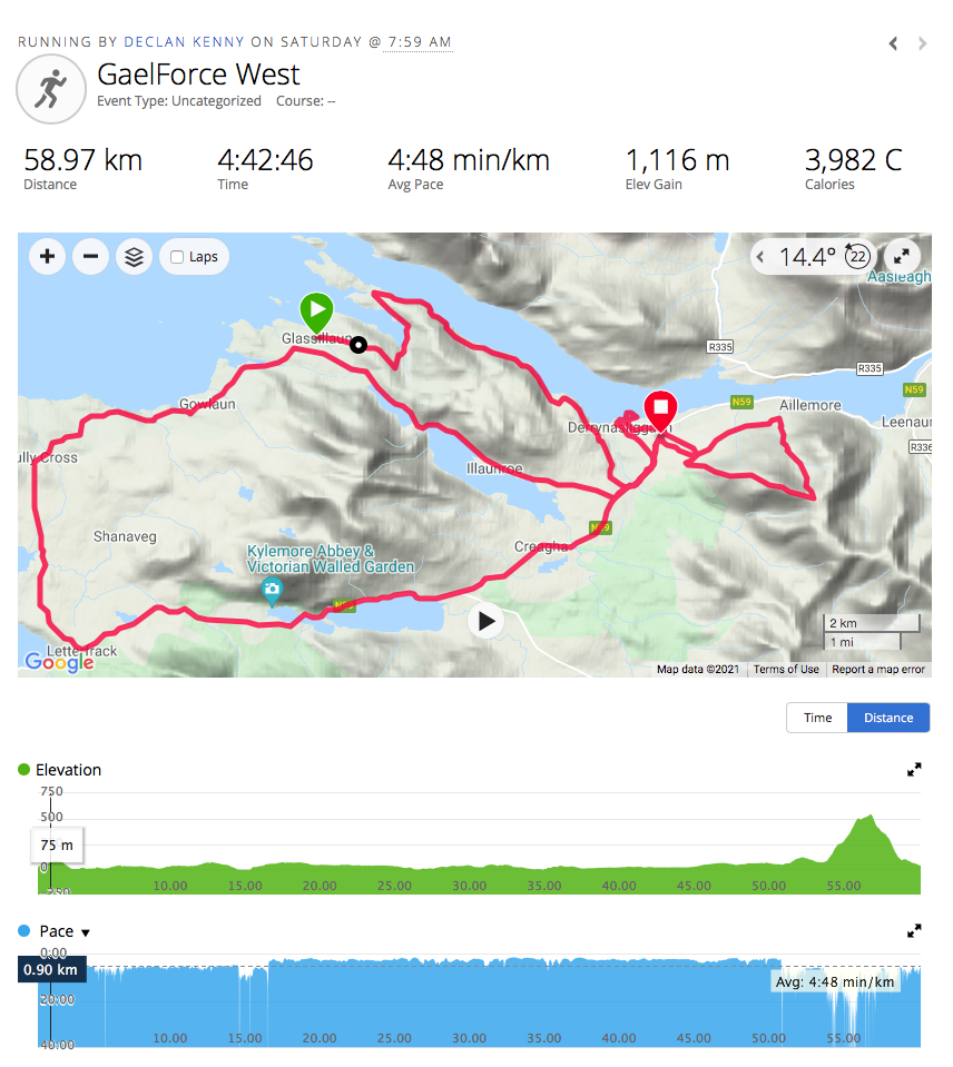 GaelForce may have been postponed numerous times, but they run a tight ship. Plenty of car parking in Leenane village, and coaches to the start line at Glassilaun. Lots of markers and marshals on the course too.