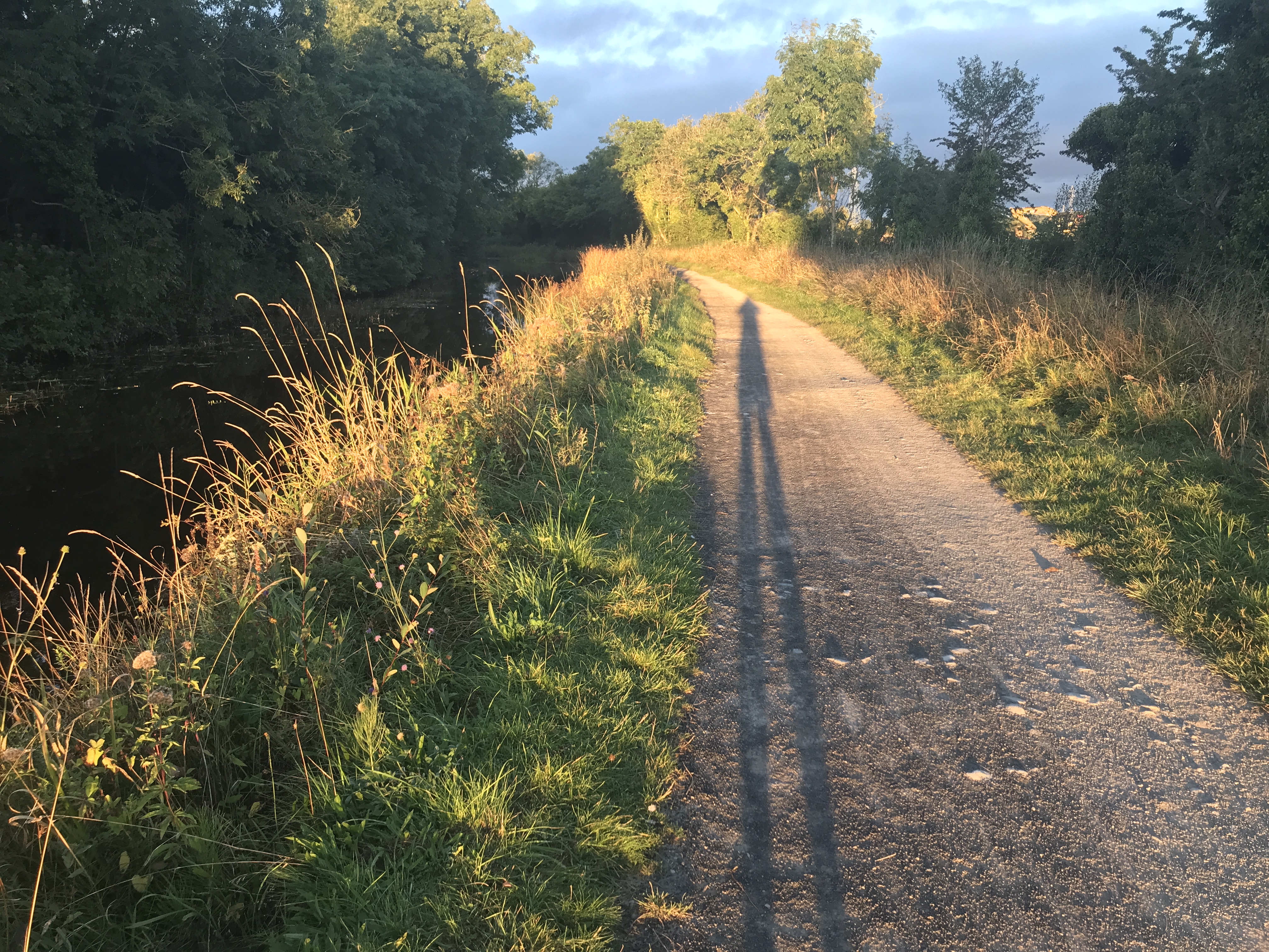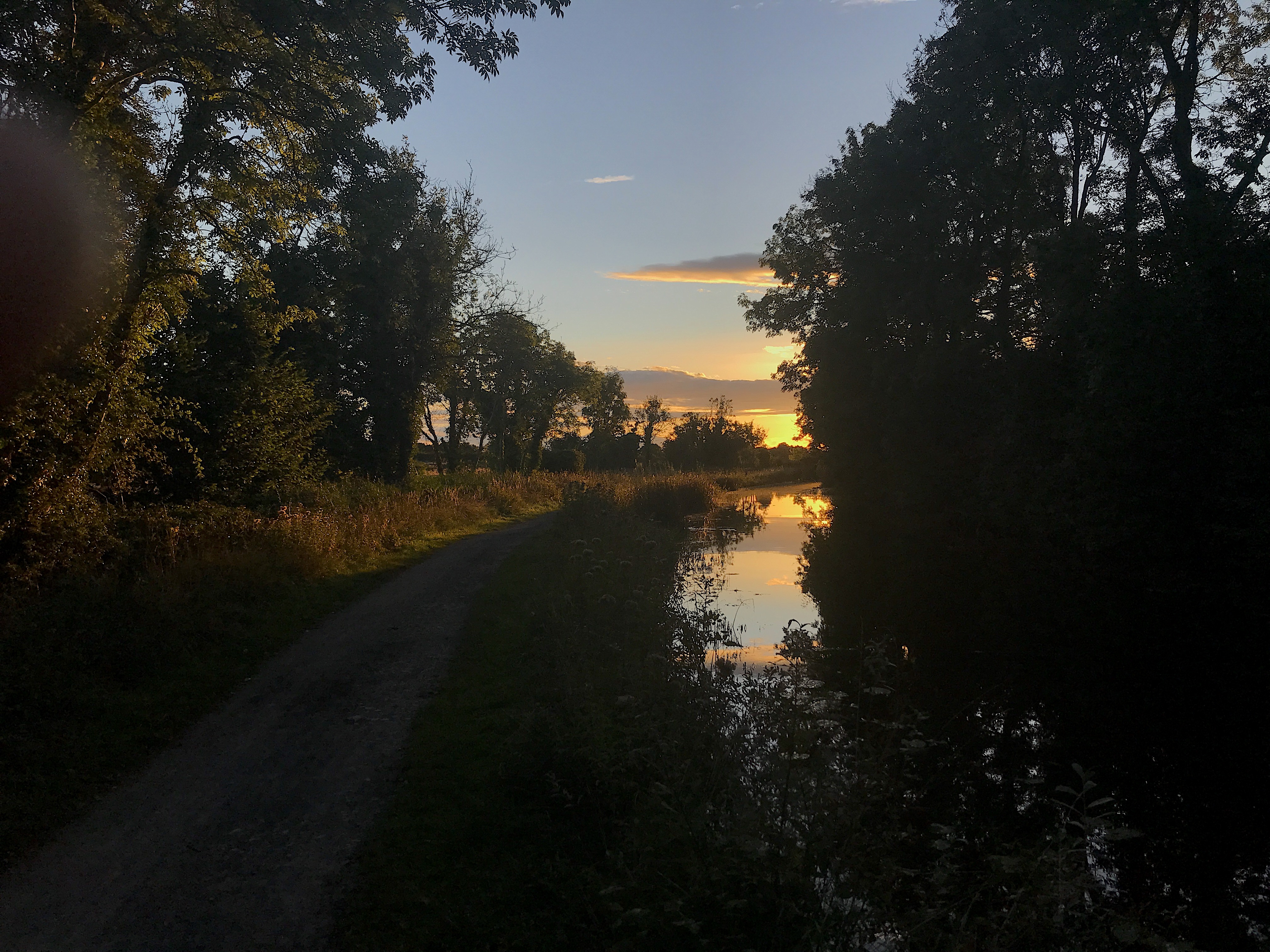 As I inched my way around my chosen route, the light began to leak into the gloom, and the torch was placed back in the pouch. By the time I crossed the bridge over the Liffey near the Salmon leap canoe club, the sun was starting to glow on the horizon, and it finally made an appearance when I hit the canal. I was rewarded shortly after with a glorious rainbow. Gary often accompanies me on these long runs, but this morning, I think it was better to be on my own. I would have made for poor company in any case.