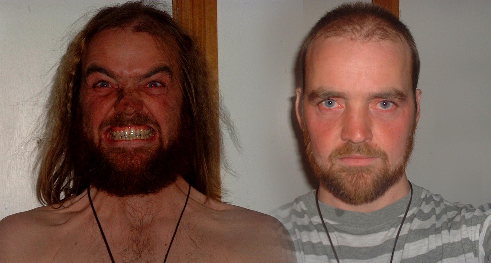 Anyway, here’s an image of Saint Declan. I have no idea if it’s a good likeness, but I can see some resemblance to me, around the eyes. And perhaps even more so if I make it to the end. For comparison, I raided the archives and found a composite image of me that I put together in November of 2003. This was the day after filming for King Arthur wrapped in the Wicklow Mountains. I had spent most of that Summer up at the crack of dawn, had mud rubbed into my face, beard and hair, and run around a field (sometimes the surroundings were set on fire with gas and diesel), waving a rubber sword, and hitting people. Or getting hit. Or at least pretending to. And then falling over. Then hearing ‘cut!’, and then doing it all again.