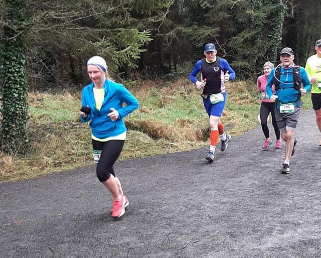 As each lap was reeled off, I was taking a gel just before the finish line. Then a sup of water from my pack. The downside to the 500mls of energy drink I had taken that morning was multiple wee stops in the woods which meant a break in momentum and a necessary speeding up to catch up on the pacers. My fear was that there would be one break too many and I would not have the necessary ‘oomph’ left to reconnect. Or worse; I was waiting for the show-stopper. The sudden sharp pain in a knee, or perhaps the hot twangy gloom of a hamstring giving up the ghost. My hope here was that a combination of gym sessions since the new year, a gentle but noticeable increase in training since Christmas, and the more agreeable 6 minute a kilometre pace would be just enough to keep the show on the road.