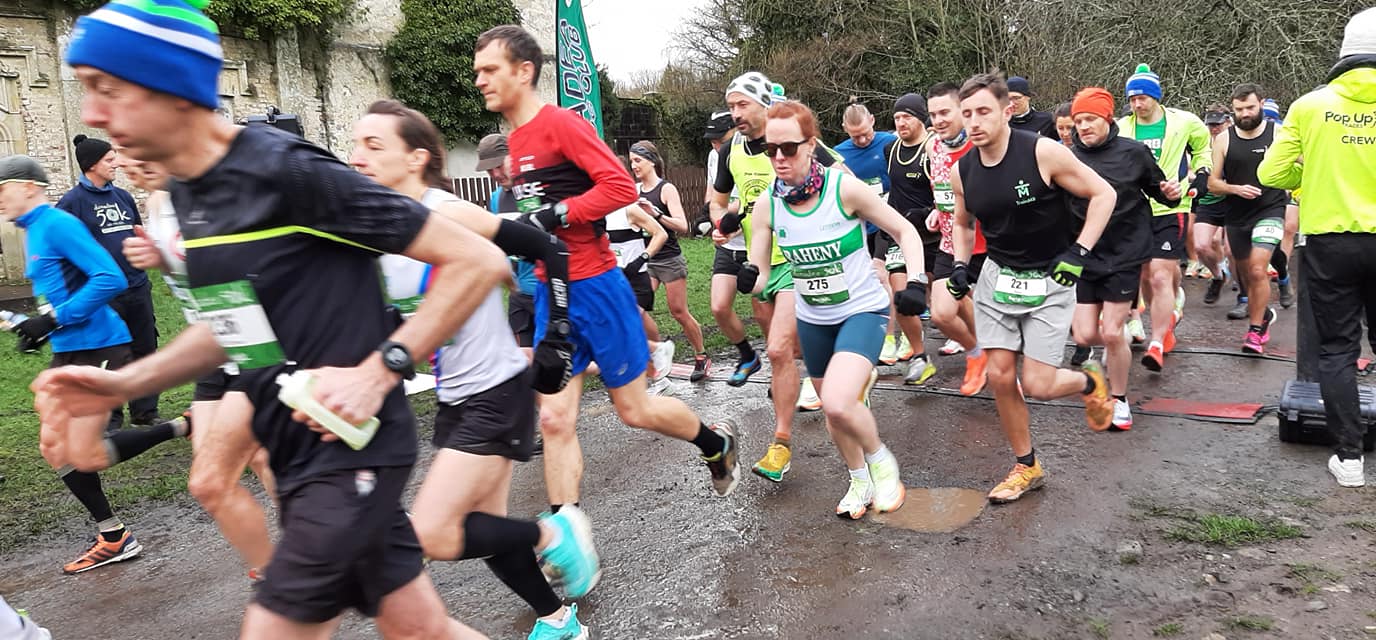 As each lap was reeled off, I was taking a gel just before the finish line. Then a sup of water from my pack. The downside to the 500mls of energy drink I had taken that morning was multiple wee stops in the woods which meant a break in momentum and a necessary speeding up to catch up on the pacers. My fear was that there would be one break too many and I would not have the necessary ‘oomph’ left to reconnect. Or worse; I was waiting for the show-stopper. The sudden sharp pain in a knee, or perhaps the hot twangy gloom of a hamstring giving up the ghost. My hope here was that a combination of gym sessions since the new year, a gentle but noticeable increase in training since Christmas, and the more agreeable 6 minute a kilometre pace would be just enough to keep the show on the road.