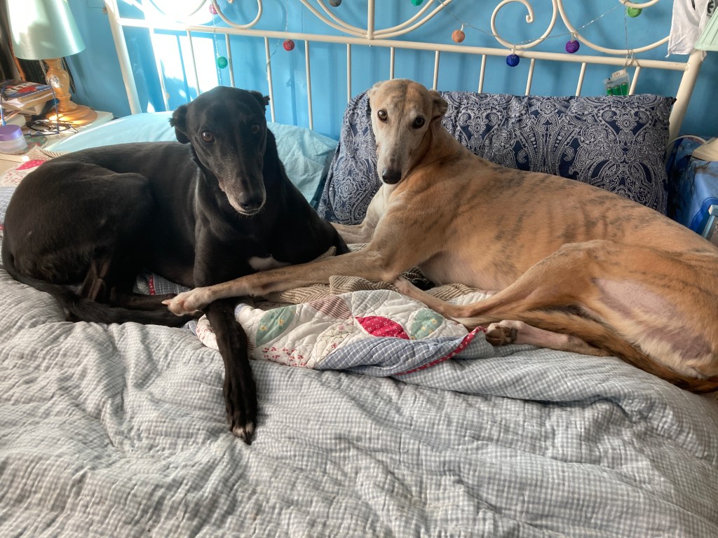 And now, some dogs on a bed.