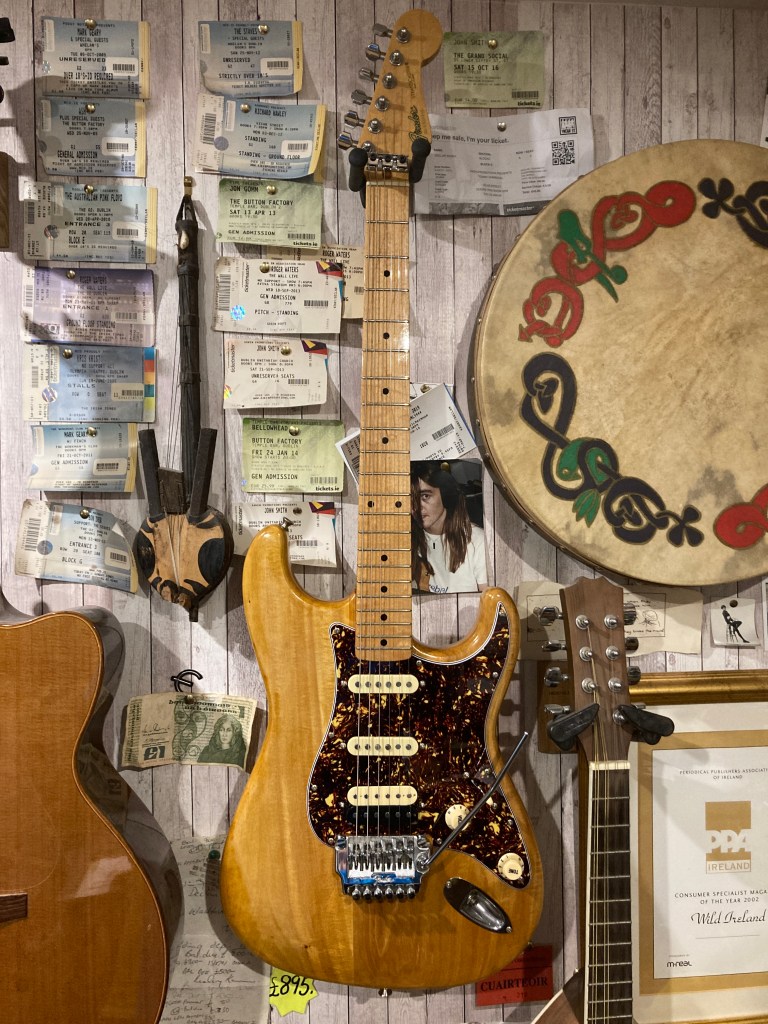 Yeah, the Fender is nice and all — but it’s that bodhrán on the wall I want to get MY hands on. 😉