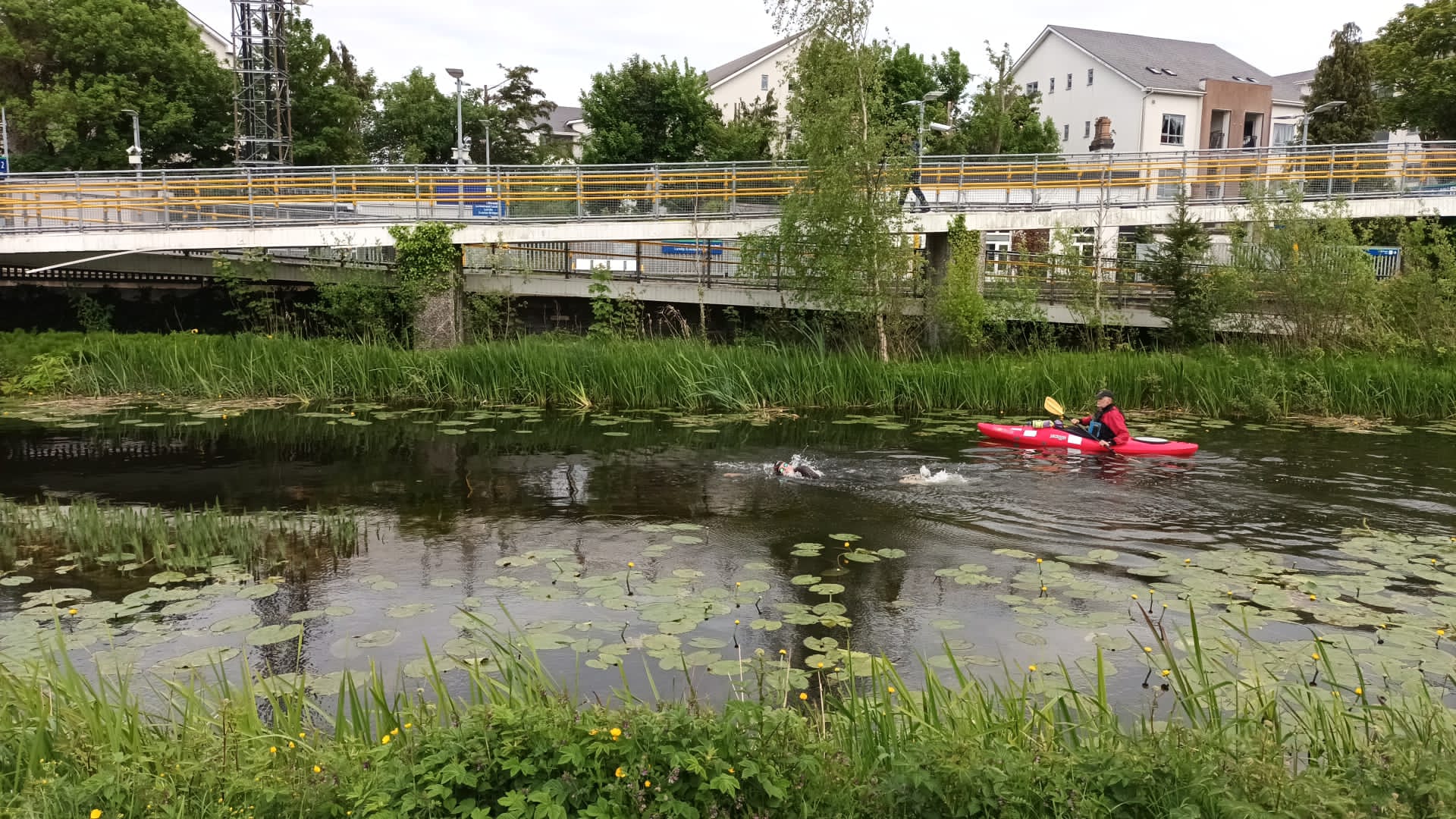 I was also able to do my swim on Saturday evening, at 6pm. The weather had started out a little fresh and cool, but as the day wore on, it warmed up enough to make the thought of swimming a mile in my local canal a little less unbearable. A local paddler friend of a friend had offered to come up with his kayak and ride shotgun, and a small knot of friends, fire crew and supporters rocked up to see me launch myself into the cloudy waters of the Royal Canal. It all went, eh, swimmingly. Even though I have done, in technical terms, bugger-all swimming over the last couple of years, I acquitted myself reasonably well, and finished in 38 minutes. Google Maps measures the distance at about 1.85km, so it’s over a mile, in truth, but nobody was counting, and nobody particularly cares. It was about getting in and doing it, and raising awareness and much-needed funds for a great organisation. And indeed, it was great to have a couple of representatives from the North Kildare Branch of the RNLI there on the day. To be honest, I didn’t know there was such a thing as the North Kildare Branch. Now I do. We also had a press photographer there, so there should be some nice photos as well.
