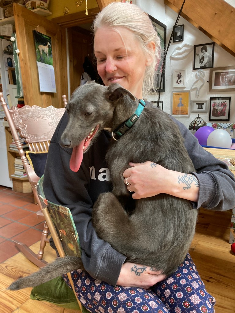 Whilst our lives are busy enough, we always find room for dogs. And we are currently looking at fostering another, with a view to hopefully failing miserably at that into full-on adoption. Nora Jones was a bit of an emergency foster. She’s about a year old, and we’re not sure what she is, other than she is a small lurcher. This covers a multitude. A classic mix, favoured by Traveller folk, is a terrier and a whippet or greyhound, which gives you a slim and lovely hound that can run like the wind, but also is happy getting down and dirty in hedges and ditches; in essence, a hunting dog. Greyhounds have great speed, but they can be very precious, and don’t like rolling up their dainty sleeves and getting stuck in. Terriers, on the other hand, are born to that sort of mucking about. This mix tends to be ‘hairy’ as well, as opposed to the smooth coats of a greyhound.