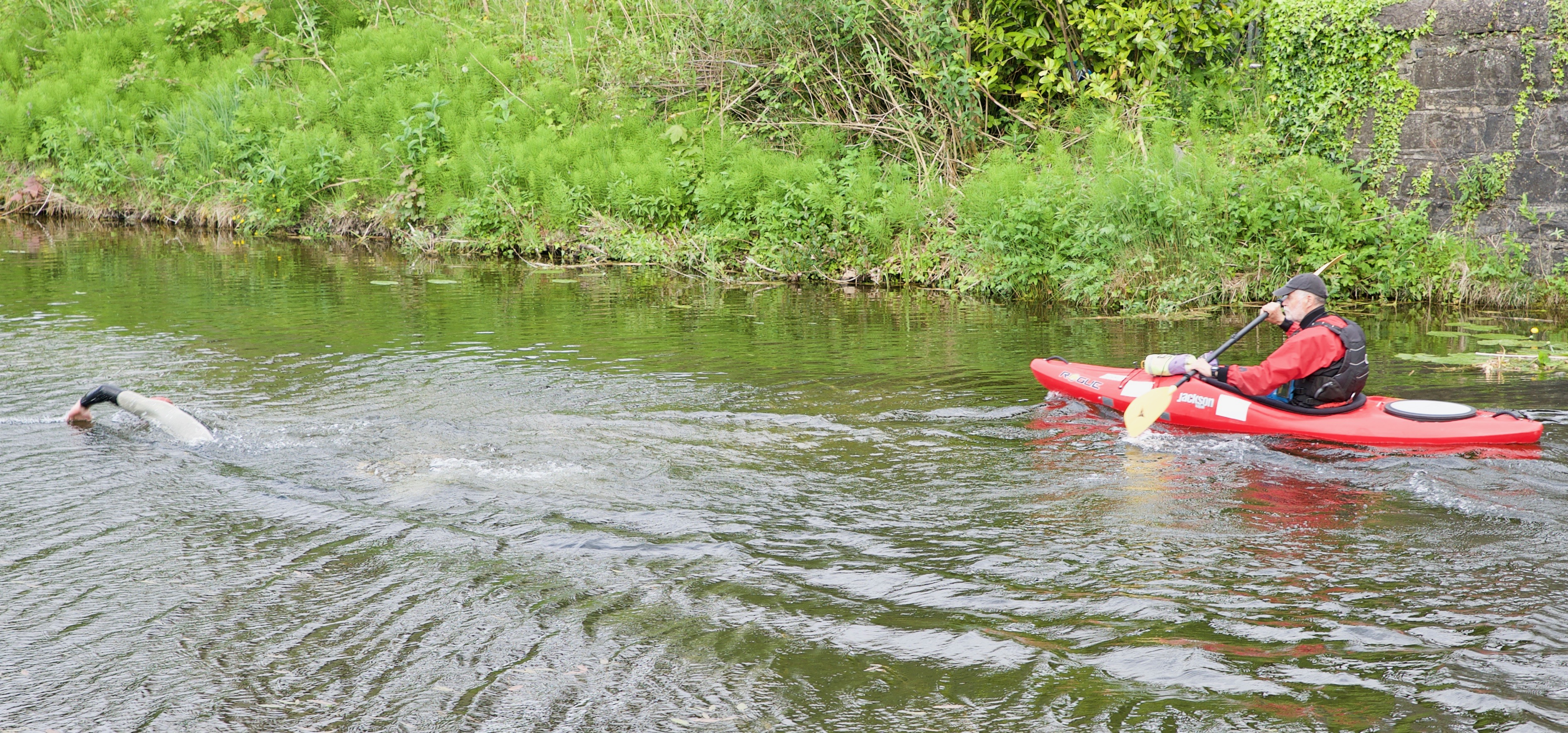 So when I trekked through the park with all my gear on (all long runs now will be with as much ‘Declan’s Way’ equipment as possible) and turned left up the Clonee Road towards the canal, I was going to be turning left again towards Confey, instead of right towards the city. Into the west, if you like. I passed the scene of the previous weekend’s swim, albeit in the opposite direction. (We have reached and passed our €1,000 target. I’ve added a few images from the day, most of which made the local paper).