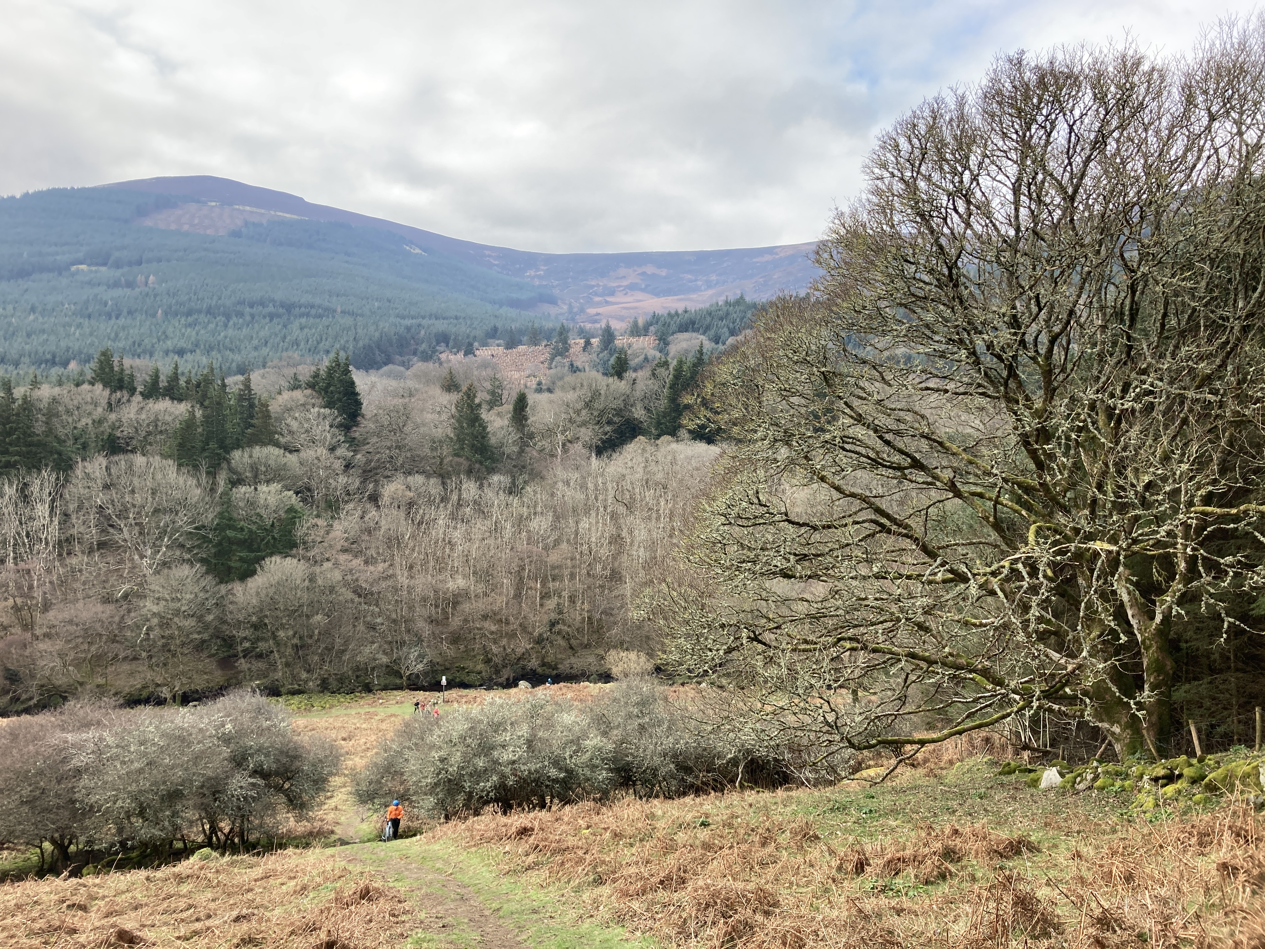 The Wicklow Way is a long-distance trail that runs from south county Dublin, through the Dublin and Wicklow Mountains, finishing in the village of Clonegal in County Carlow. It’s about 130kms all told, and I’m delighted to be able to inform you that it’s part of the E8 Footpath, which is a modest 4,700kms long, finishing in Istanbul. So if one was so inclined, you could take that on one day.