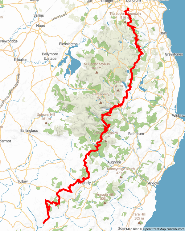 The Wicklow Way passes very close to Ticknock, where my Dad grew up in a small stone cottage as a young lad, in the foothills of the Dublin Mountains. And it’s about half a kilometre from Three Rock, where we will scatter his ashes this Summer. He would have traversed some of the Way before it even came into being. So the journey for me is my way of commemorating my Dad. I haven’t worked out the finer points of the route, but I am hoping that I can detour slightly at the end and take in Three Rock. And this is why I have chosen to run the route from south to north, though it is traditionally hiked the other way. This means, from a practical point of view, that I can ease myself into the journey with the first leg incorporating a lot of roads and easier terrain without too much climbing. If I set off late in the evening, I can get through the first 40 or so kilometres in the dark with head torches.