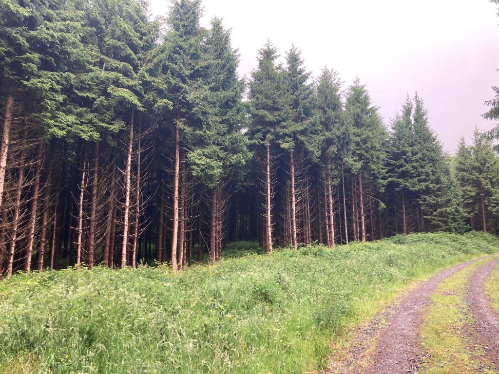 Most of the Way is blighted with Sitka Spruce plantation, and fire roads (forestry access roads)