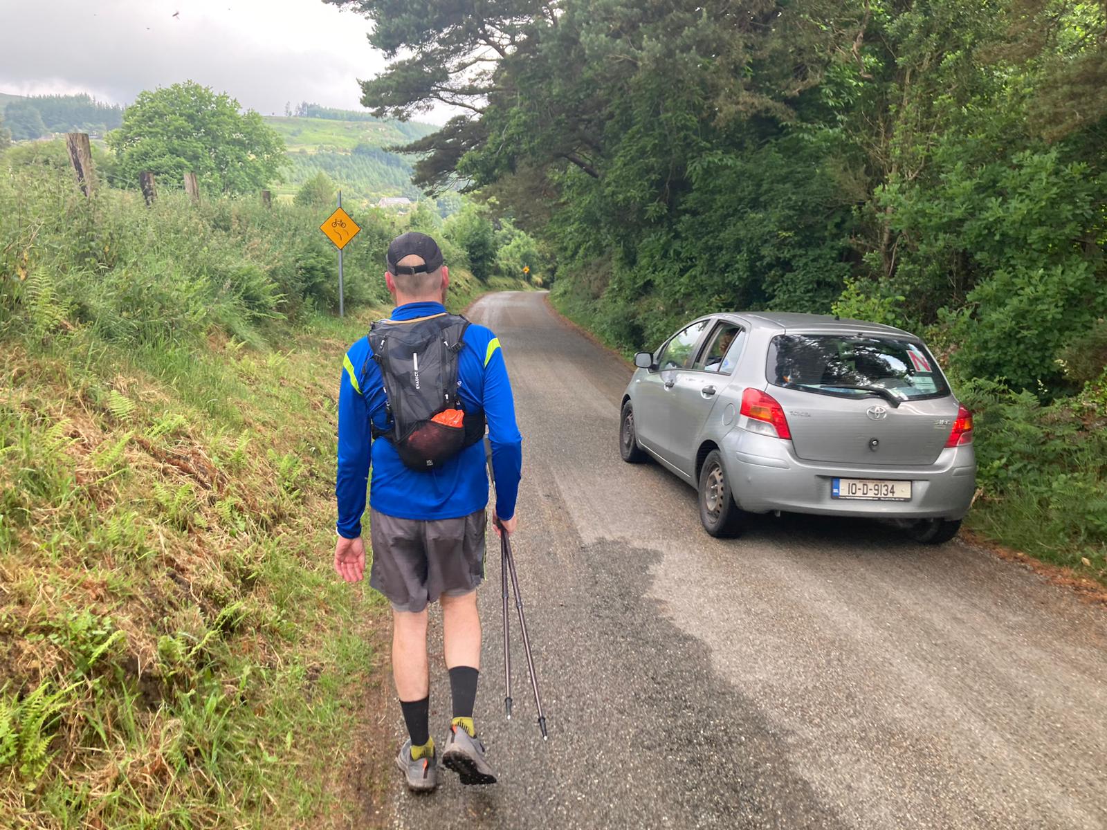 The start of any solo endeavour like this is always a bit surreal to me. Many of us have stood at the start of a big city marathon where there is always a nervous energy hanging in the air, whereas on a day like today it was just a matter of counting down the seconds and then saying to the runner “off you pop”, I’ll see you down the road. I took a few moments back at the car to make sure I had everything and then headed down the road Declan was running, beeped the horn as I passed and headed for my first planned aid station.