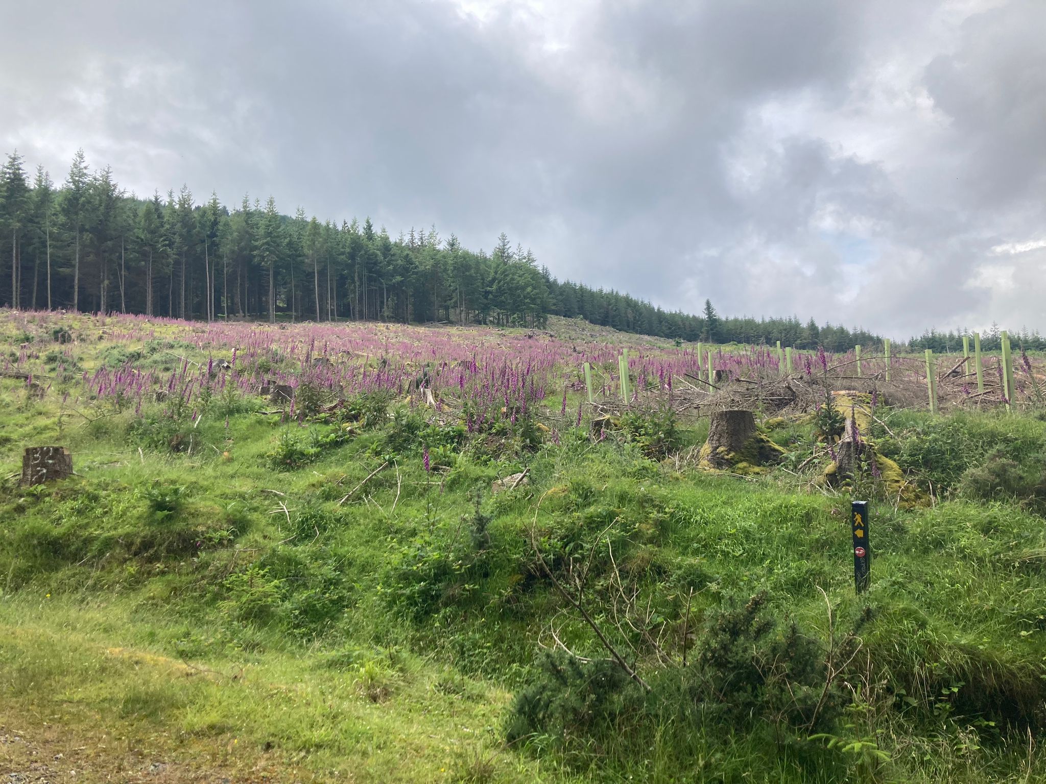 Most of the Way is blighted with Sitka Spruce plantation, and fire roads (forestry access roads)