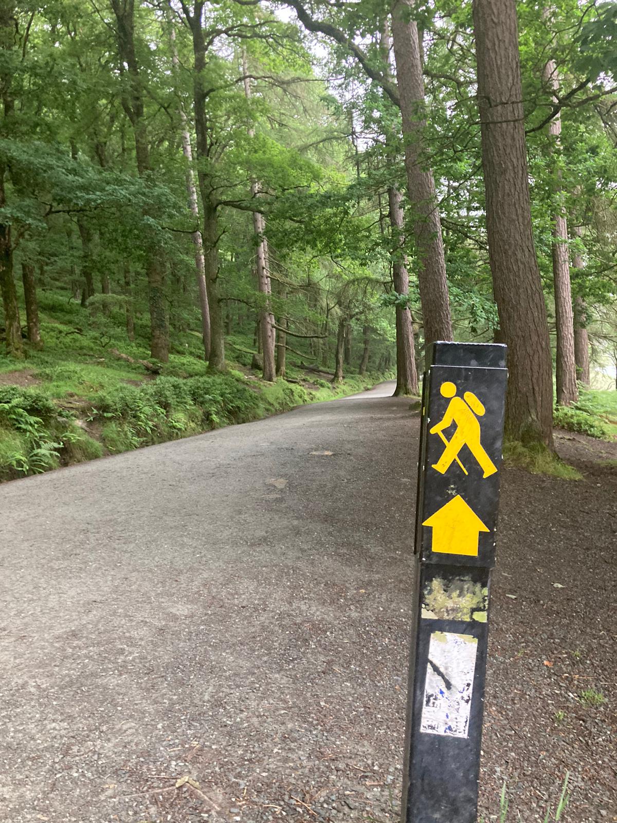 And the Way itself responds in kind by offering one of the more appealing sections. There is a thick cover of old-growth trees here, along the slopes, and the shade underneath has provided the perfect ecosystem for moss. The understorey is thick with the stuff, and the cool and shade are welcome. There is a short climb before a drop back down towards Laragh village, and then the Way crosses the Glenmacnass River. I managed to miss another turn here, but my mishap was relatively short and quickly corrected.