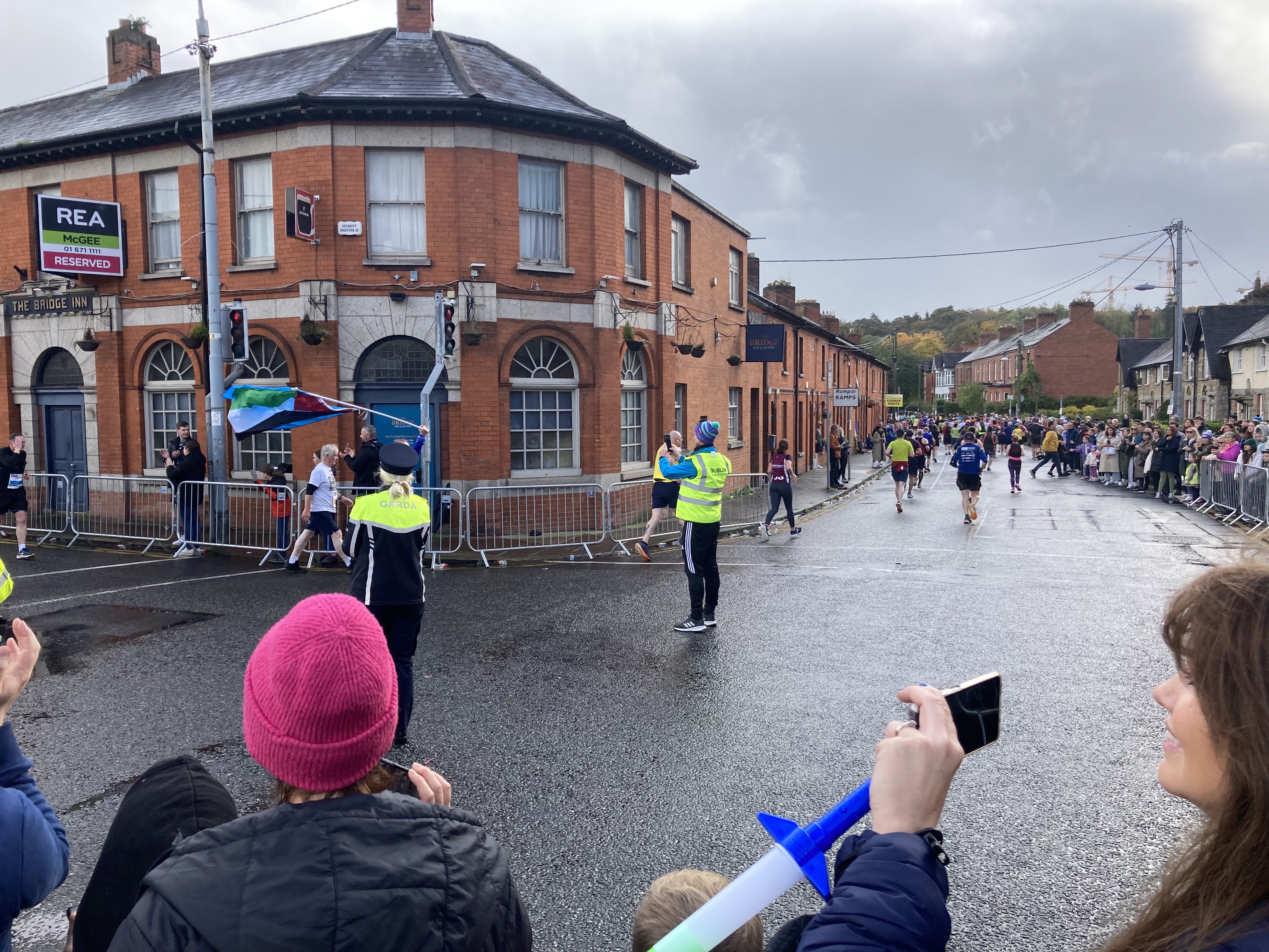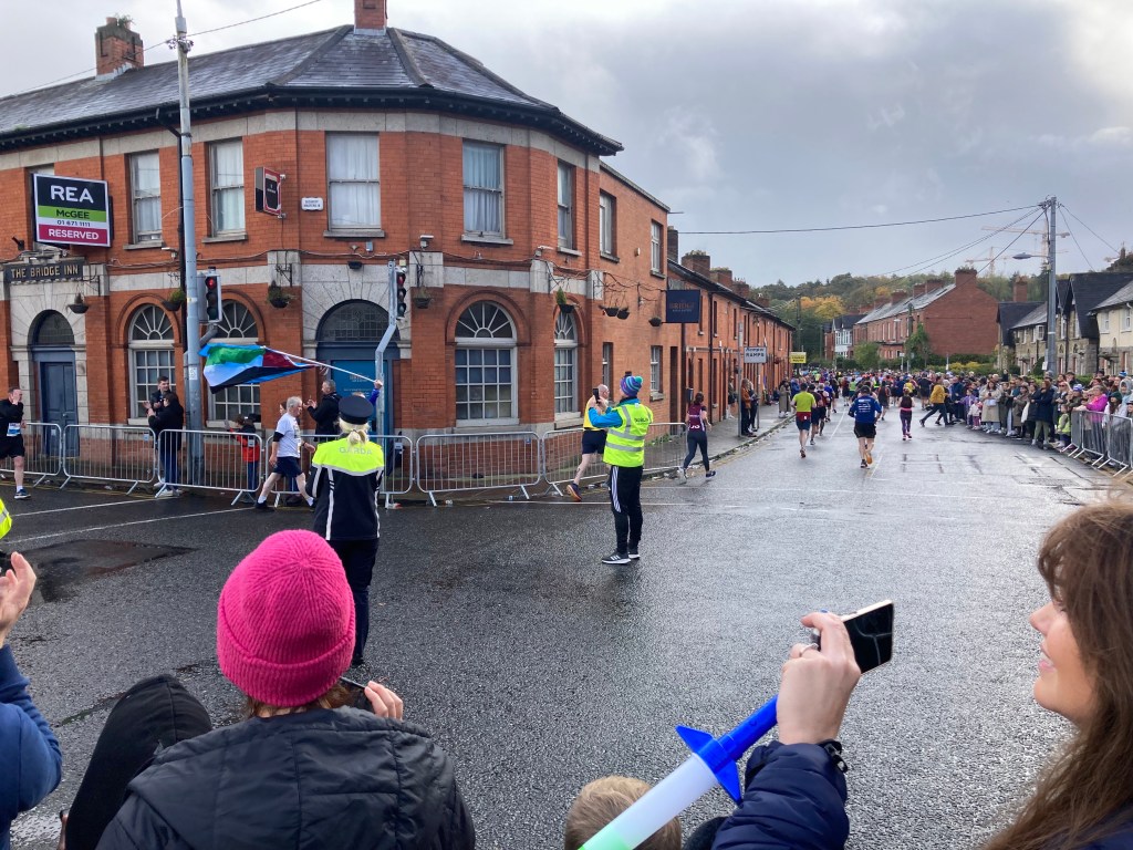 Despite a few Guinnesses from last night, I headed in to see the Dublin Marathon. I parked myself in Chapelizod, near the bridge, at the ten-mile mark. And indeed, for the first time as a spectator, I managed to see the leading runners go through. Always impressive. The first Irish runner was Stephen Scullion, a bit off the lead pack, but he clearly rallied as he finished third overall in 2.11:51. The winner was a twenty-year old from Ethiopia called Kemal Husen in a new course record of 2.06:52.