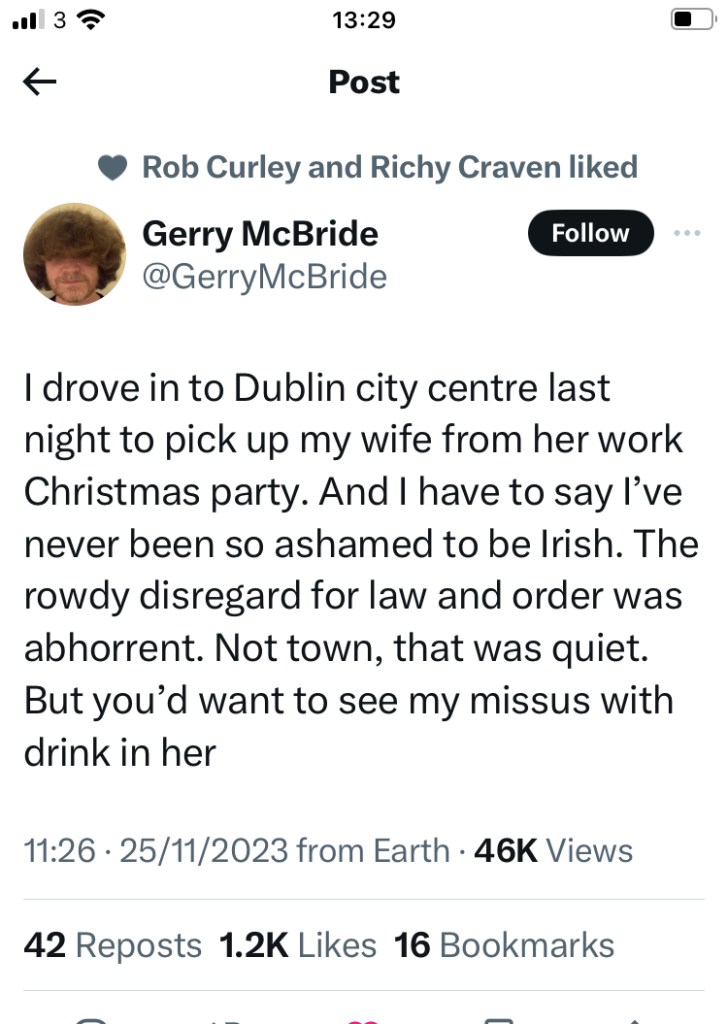 Nor am I going to get into the weeds of the whole ‘why’ question, and the issue of racism in Ireland, other than to say it’s a problem, and has been growing over the last number of years, and that our softly-softly approach has clearly not worked. But as the dust settles (and the charred carcasses of buses and cars are loaded up and taken away to be scrapped, and the shattered glass is swept away), there is a general gloomy feeling in the air that things have changed. It was not unusual to hear people say ‘I never expected this to happen in OUR country…’