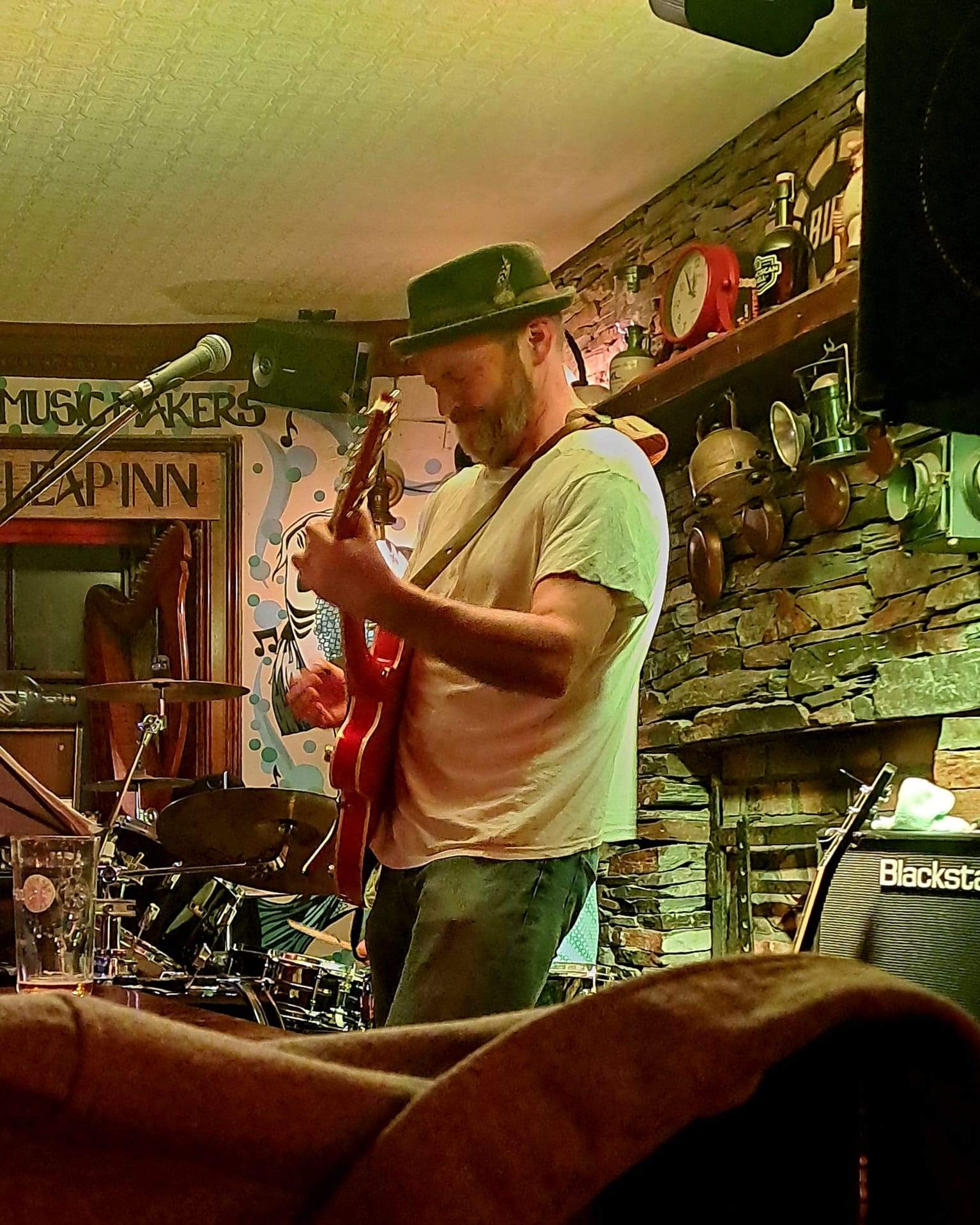 As to the rehab; well, things are going okay. The wrist is still stiff and sore in the mornings and takes a little while to wake up. The back seems to be fine, though I am taking it easy as regards lifting, bending and stretching. We played a gig last night in our local, and my crocked back got me a pass on lifting the heavy PA stuff, which was a nice change 🙂
