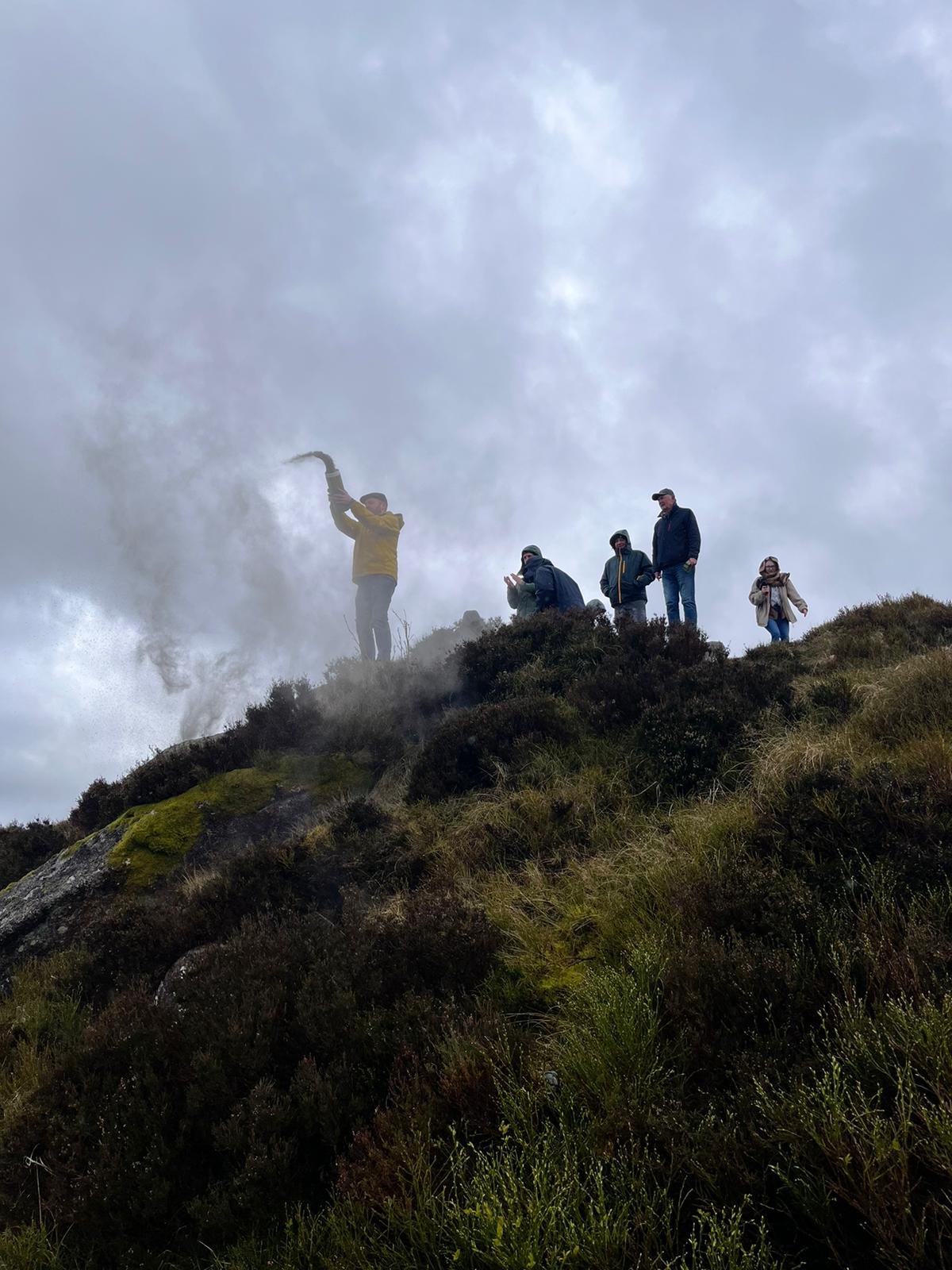 The rain spluttered (much like my car) and threatened to spoil the day, but at least for the duration of the spoken words and the scattering itself, it held off, mostly. It is worth noting, for those that haven’t partaken in one of these things before, that there quite a lot of ashes to scatter; certainly more than I had realised. But it meant, even after my first hearty cast into the wind, that others were able to scatter what remained, either from the tube, or by hand, which I thought was lovely.