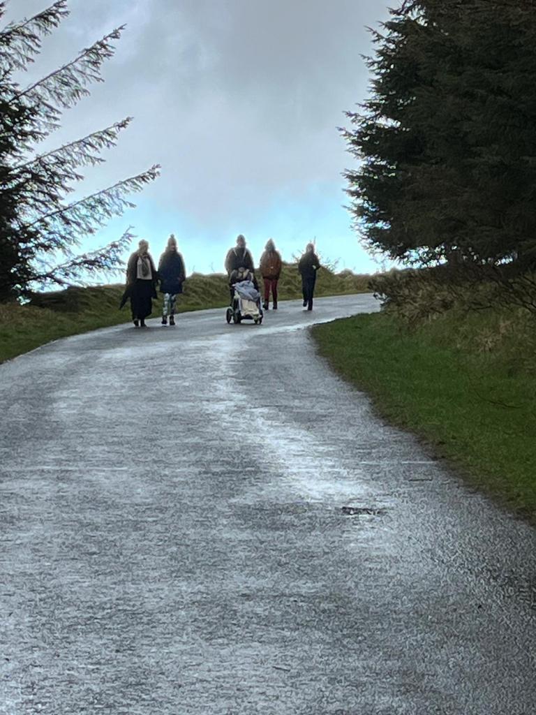 On the way back down, the heavens opened. Everyone got soaked. I was holding a brolly over my Mum and cousin, who was doing the pushing, so I was only half-soaked. But it was great to back to the warmth of the pub, and get some drinks and hot food on board.