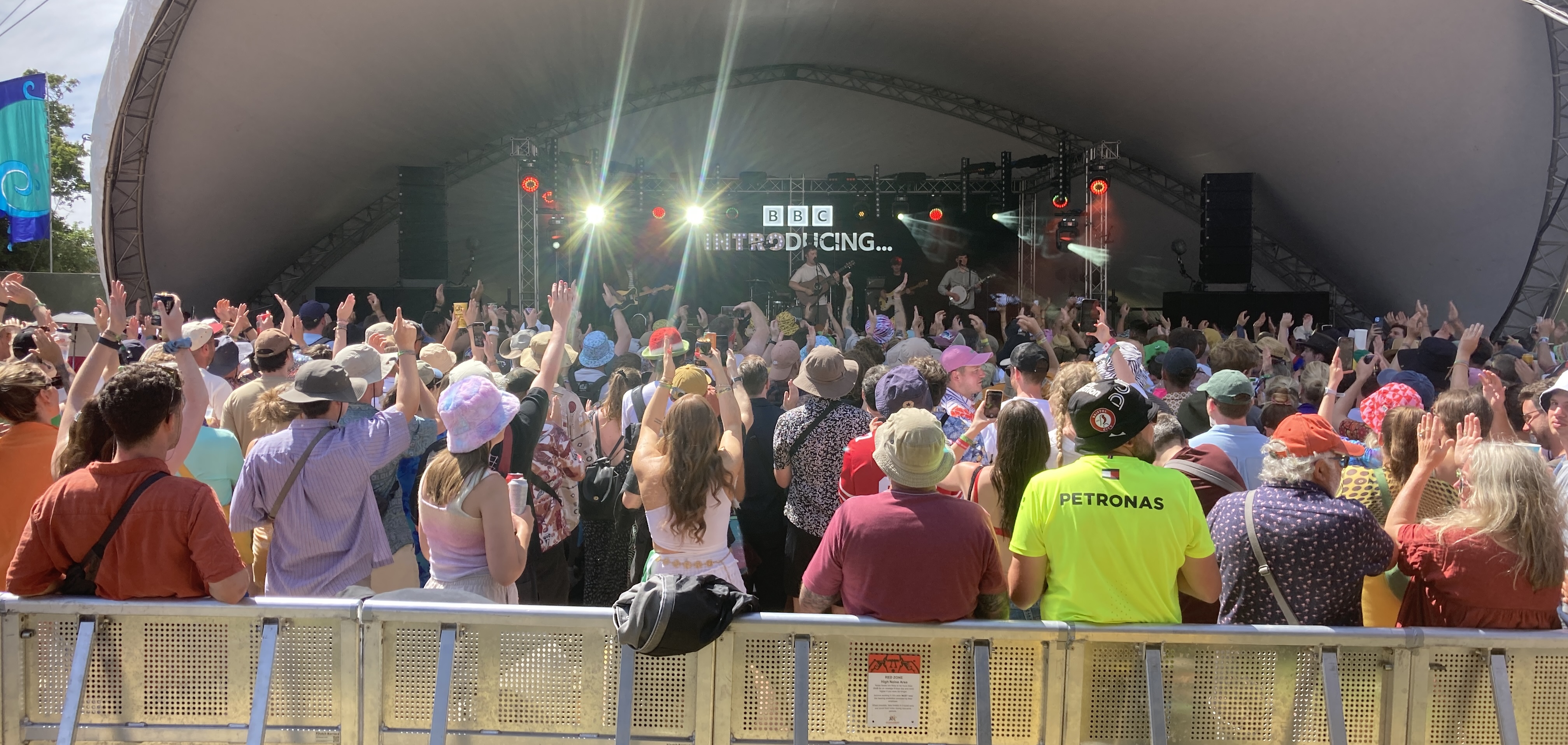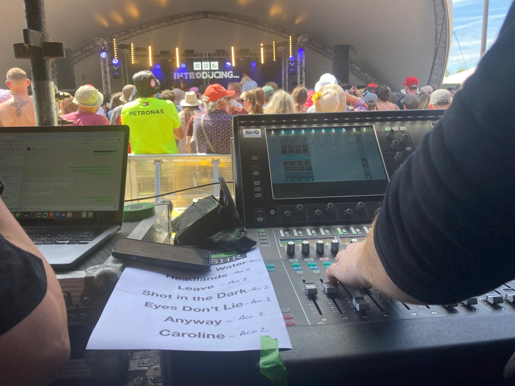 But if there was any aggravation there, I must have missed it. True, we were offsite both Saturday and Sunday nights (the younger lads camped; the older ones – tour manager/sound engineer, backline tech and I – all headed to a hotel) but I didn’t get any sense of any tension, and all the staff were very helpful and friendly. The only small altercation I witnessed was one young drunk fella trying to have a wee in the corner of some fencing and several older punters remonstrated with him for peeing al fresco. This is, I gather, a big deal at Glastonbury. You are not allowed to let fly on the ground anywhere on site. I guess 200,000 people soaking the soil with urine would rather pollute the water table and get into the stream that flows through the site. There were ample toilets in any case, and many of these were compost-based.