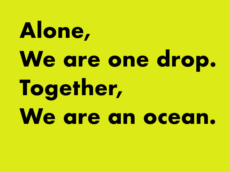 I TOTALLY agree. Even before I got to your terrific post, even before I read your brilliant sarcasm (a language dear to my heart), I read the sign. Alone we are / One drop, together / We are an ocean. And I thought, wtaf is this? A crap haiku from someone who doesn’t understand the feckin’ rules of haiku?!?