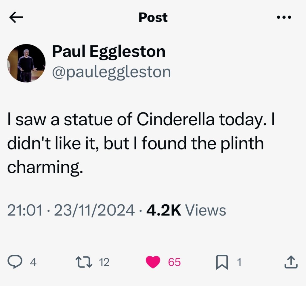 Last week, we went to the cinema, en famille, to see Gladiator II. The first outing from Ridley Scott was marvellous, and set a high bar. Fun fact: the main actor in the new film, Paul Mescal, hails from Maynooth, which is five miles up the road from us here at Leixlip (the real capital of North Kildare). Of the four of us in the family, I think I’m the only one who didn’t study at Maynooth college at some point. Of course, as a Leixlip man, I am bound to say that the only good thing to ever come out of the town was the Royal Canal, but as Gary does occasionally read this blog and also hails from Maynooth, I had best temper my language. Apologies all ’round. Not least to Paul, if you’re reading…