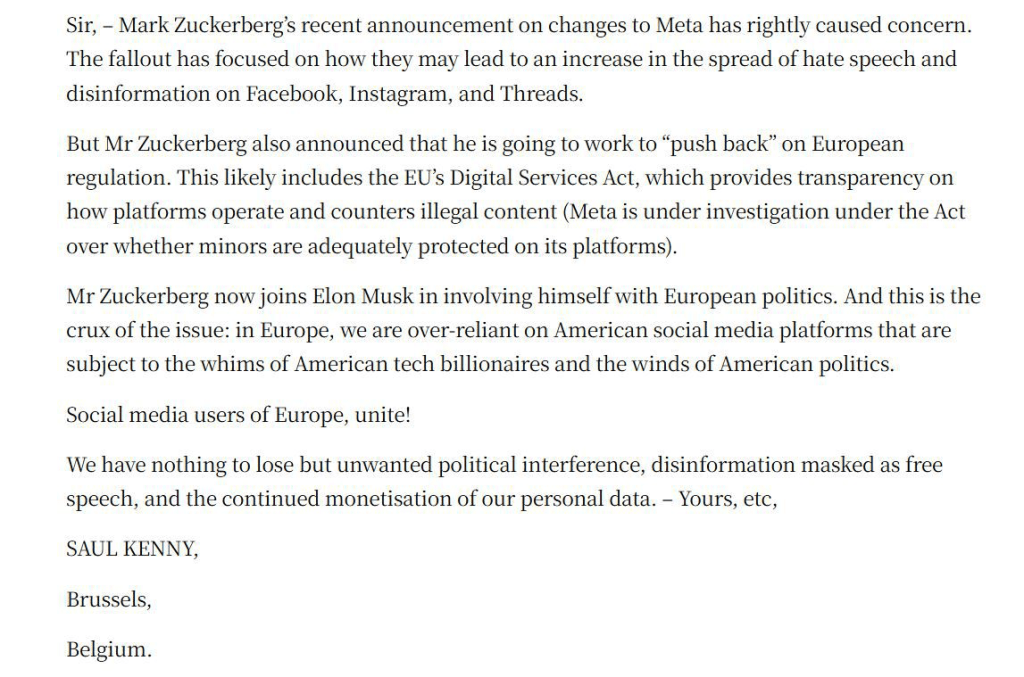 Saul currently lives and works in Belgium (I mean, someone has to, right?), and he recently penned a nice letter to the Irish Times. This has been known colloquially as the ‘paper of record’. It’s the establishment paper, as such. I used to get a kick out of getting the odd letter published back in the day (when it was fashionable for a gent to do such things), and my Dad, bless him, spent many a year trying to get his name in the letters page. I don’t think he ever managed, but it was a common thing to find him standing in my office during the day with a hastily scrawled note in his hand which I would then type up and email off to the editor. It was one of the reasons why I insisted we published his death notice in the Irish Times. I think he would have appreciated the joke.