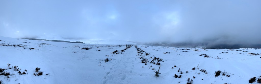 As we reached the top of the hill, the weather closed in quite suddenly. If like me you are an infrequent visitor to the mountains, it’s only then that you are reminded of the importance of knowledge, sense of direction, and the vital part visibility plays in knowing not just where you are, but where you are going. Everything is easy when you can see for miles in every direction, and when landmarks are clear and obvious. Throw a foot and half of snow over everything, and a blanket of icy fog, and things change. Quickly.