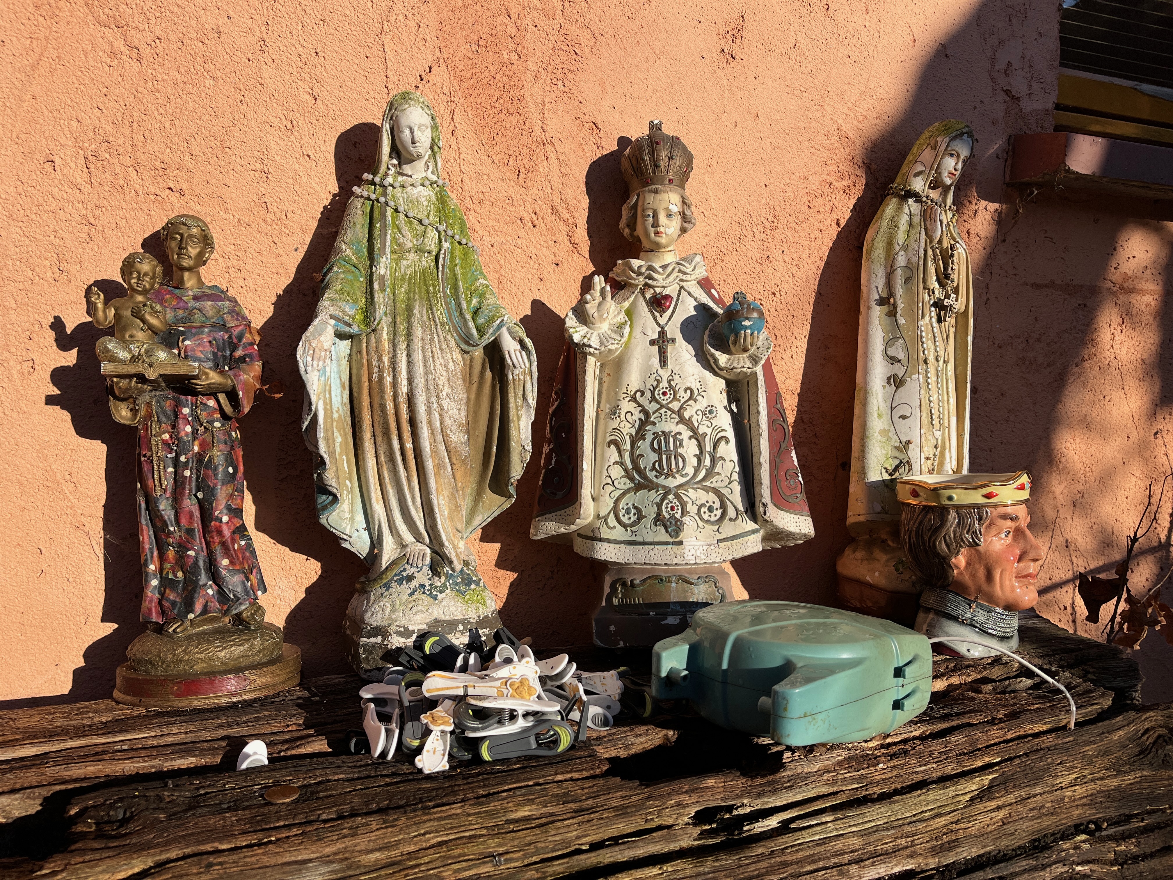 1. I thought a still life was all fruit and flowers and common household bits in varying states of vibrancy or decay. The little family of religious figurines has totally expanded my concept of common household bits.