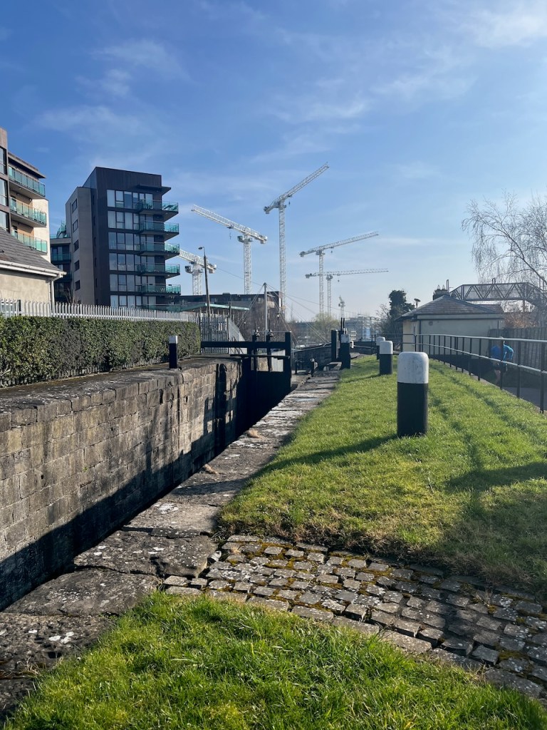 The 10th Lock; classic Georgian engineering, overlooked by a bevy of cranes