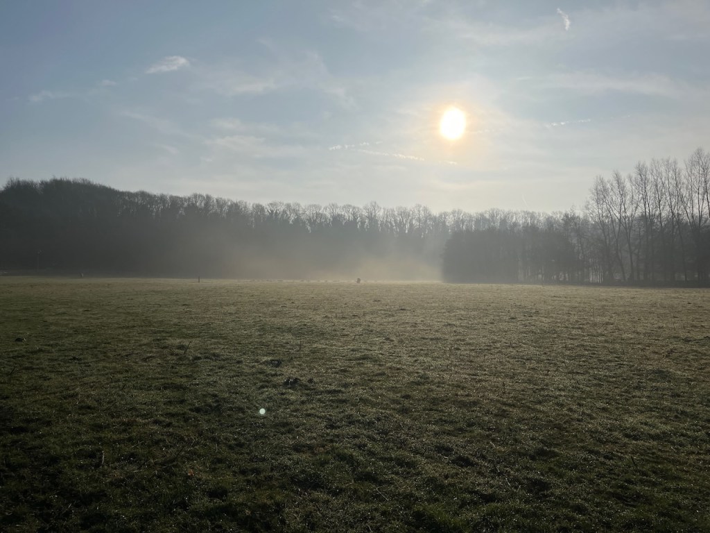 The first stretch was a bit of a slog, and I wondered if perhaps I might throttle back on my distance. After all, I knew Gary was taking a week’s rest from running, and JC was still carrying a bit of a knock… I shooed these thoughts from my mind as I emerged from under the tree canopy of the Avenue into the wide open space of the wet meadow by the river where the Highland Cattle graze. This morning, with just the finest of mists to add an Impressionist touch to the scene, it was clear that while I was faffing around in work, trying to find my feet (and despite walking dogs and running through the park several times a week), Spring had arrived with its usual subtle fanfare, and was beginning to put on a display. Clumps of shy Wood Anemone accompanied the Lesser Celandine. Buds are about to burst forth.