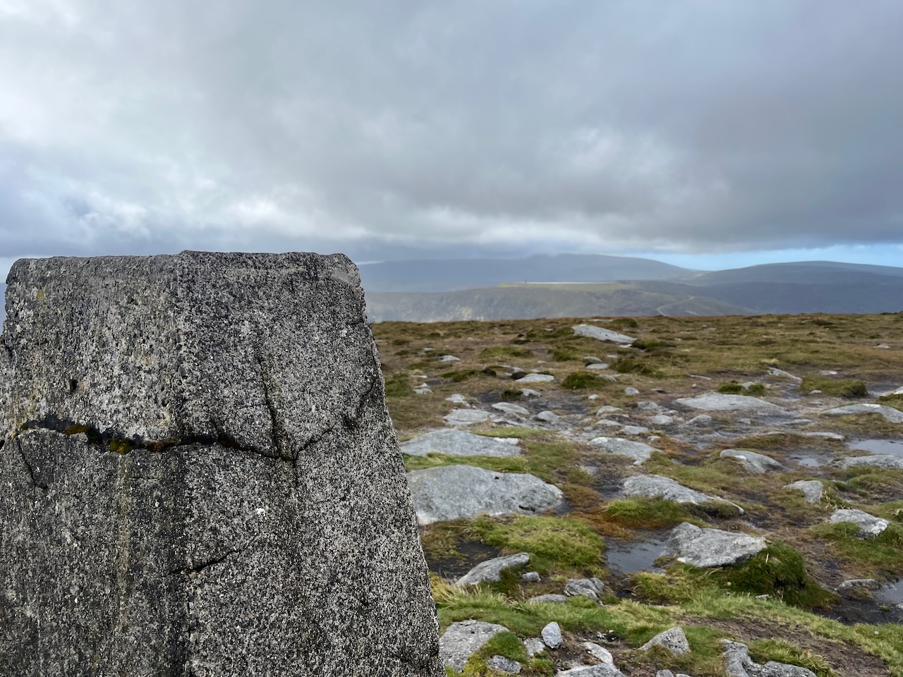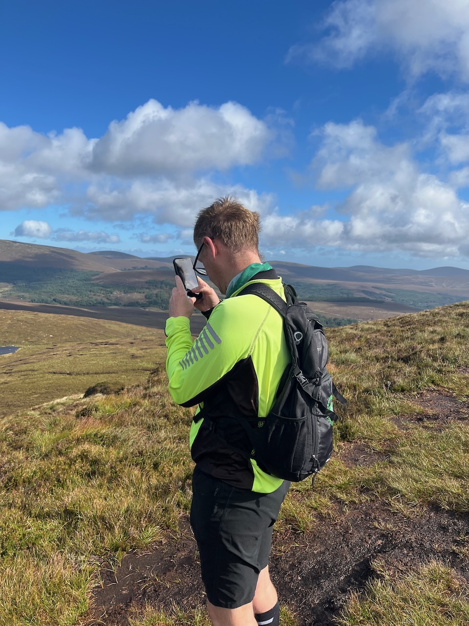 With the trig point ceremoniously touched, we could begin our descent. The route back is reasonably clear as it is a more popular route, but it was still possible to wander off the beaten path. Gary’s keen eye for a map made sure we navigated our way back to the car park without too much difficulty. Though the peaty mud made for a few slips all the same; my footwear choice had not been as wise as Gary’s, and even with the hiking poles, there were a few skiddy moments.