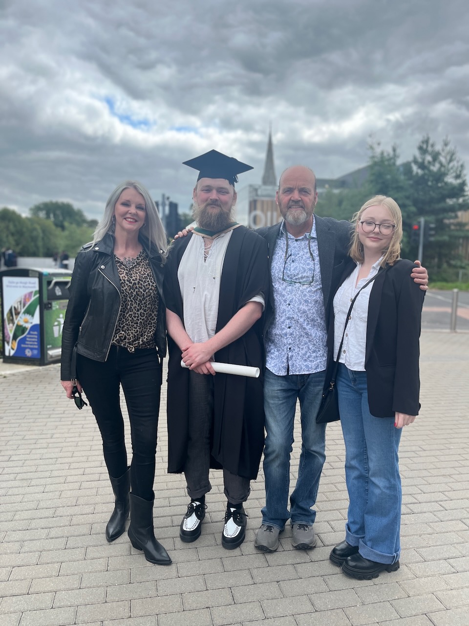 God never closes a door without opening another. And so, the day after Michael had slipped away from us in Connolly Hospital, Saoirse and I joined Tamsyn and Aoife (Dallan’s partner) to witness and celebrate Dallan’s graduation from Maynooth College with a degree in Law and Criminology. As an events manager, I might have some mild criticism for the big man up above on his timing, but that said, it turned out to be something of a welcome change for us to be amongst the core family group for a few hours, and away from the sorrow and grief. We picked up my Mum and went to the Salmon Leap Inn, which is becoming the favourite lunch and dinner spot when you need a familiar place with tasty food and pleasant surroundings.