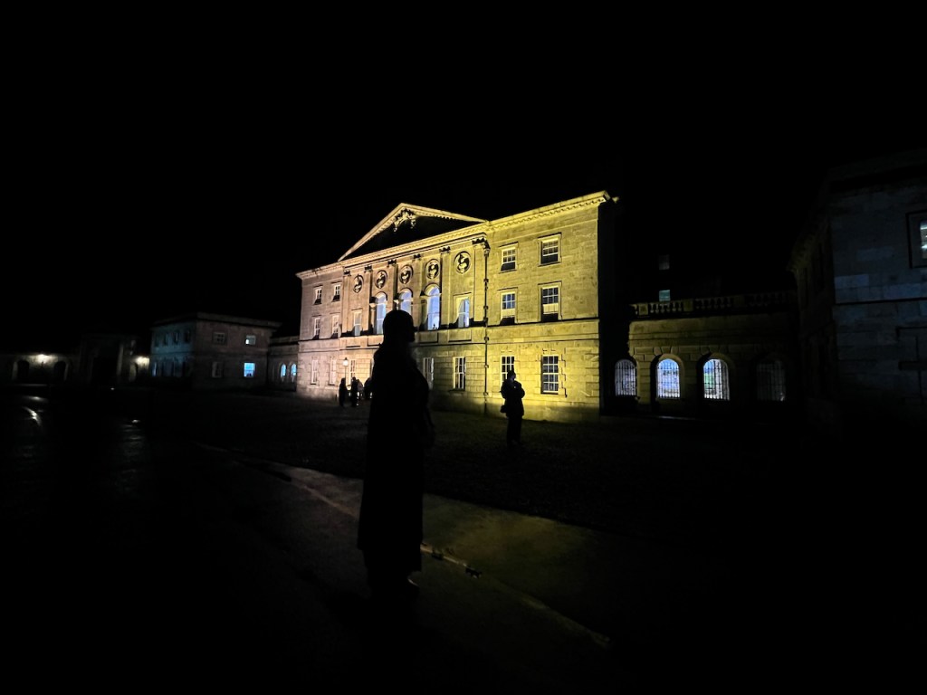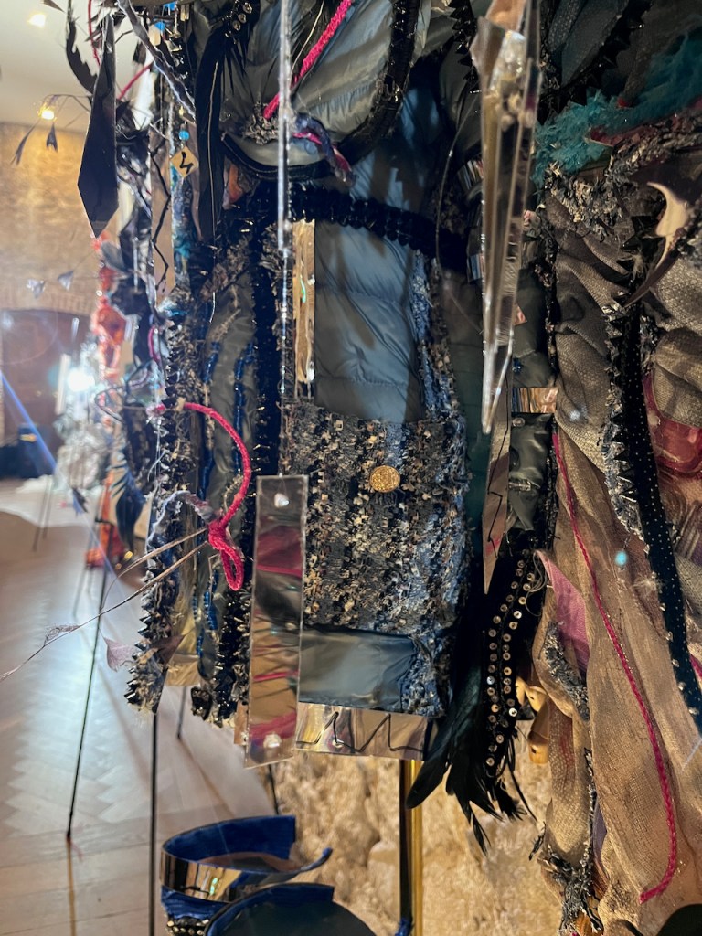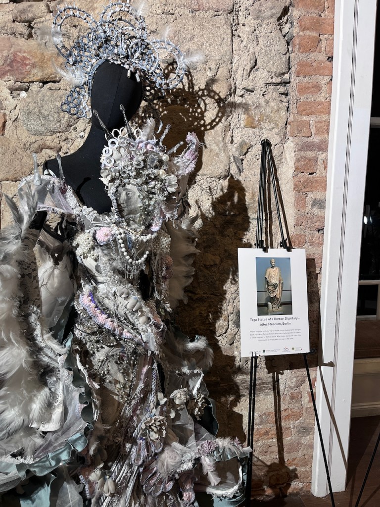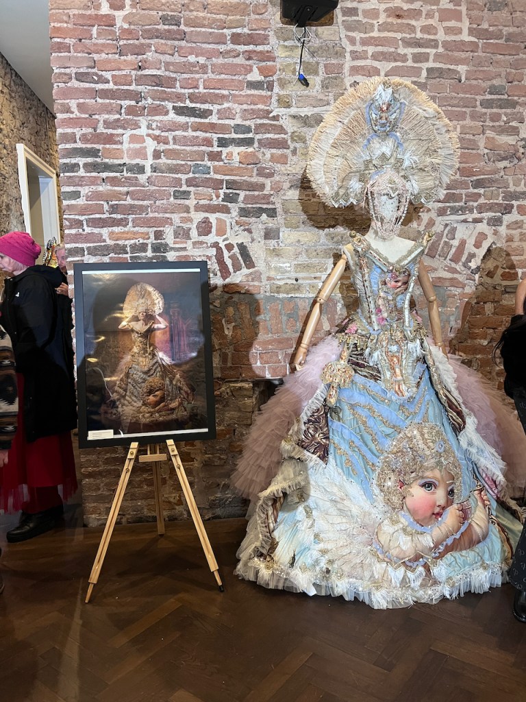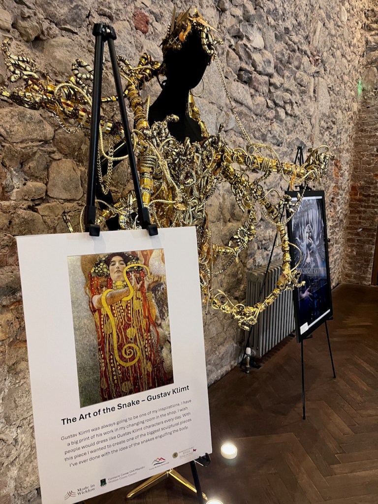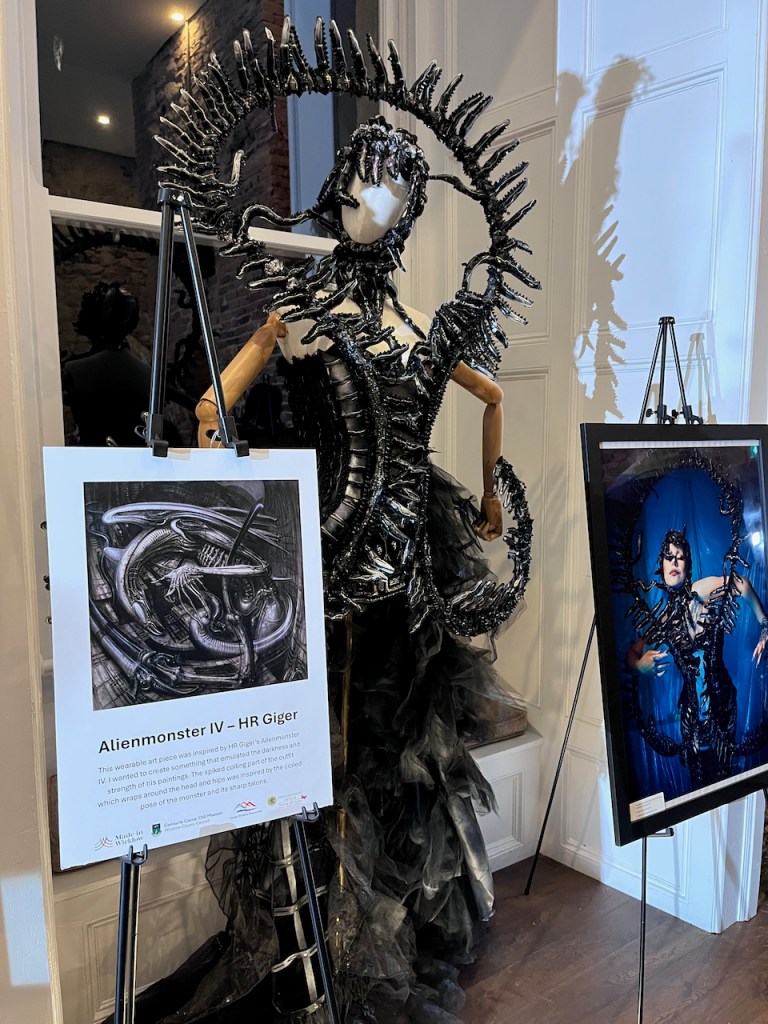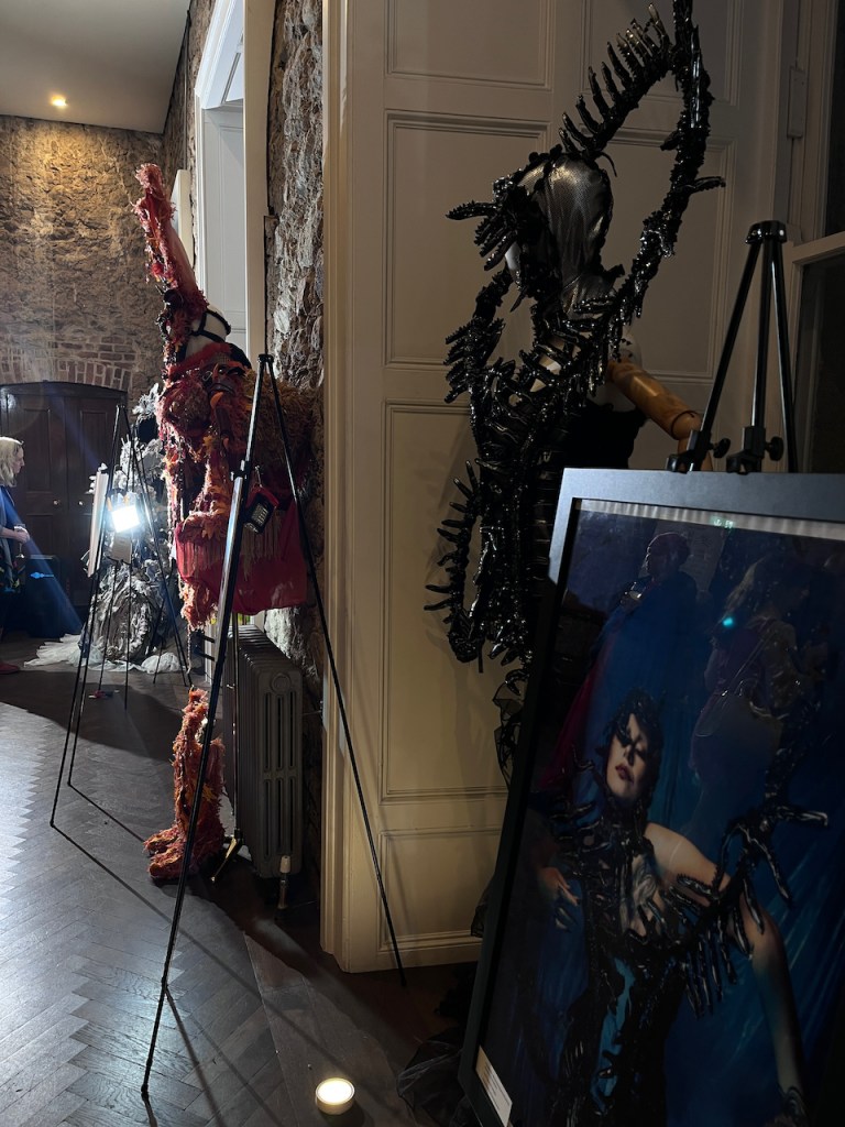 In between, S and I headed out for the night on Saturday. It was the launch of an exhibition of ‘wearable art’ from Irish fashion designer Claire Garvey. The venue was the rather salubrious Powerscourt Estate in Enniskerry, owned and managed by the Slazenger family. Many moons (and a few Orion’s Belts!) ago, I went to art college with Claire back in 1987. She has gone on to great things. Famous folk who have worn her outfits include Lady Gaga and Nile Rodgers. Her stuff is amazing, though I wonder how you could possibly get into an outfit without a coterie of nimble-fingered helpers. Or indeed, in some cases, perhaps one of those gizmos knights used to get into their armour. Live music on the night was provided by the mesmerising Sexy Tadhg. Lots of glam, as you would expect, and plenty of fine gúnas.