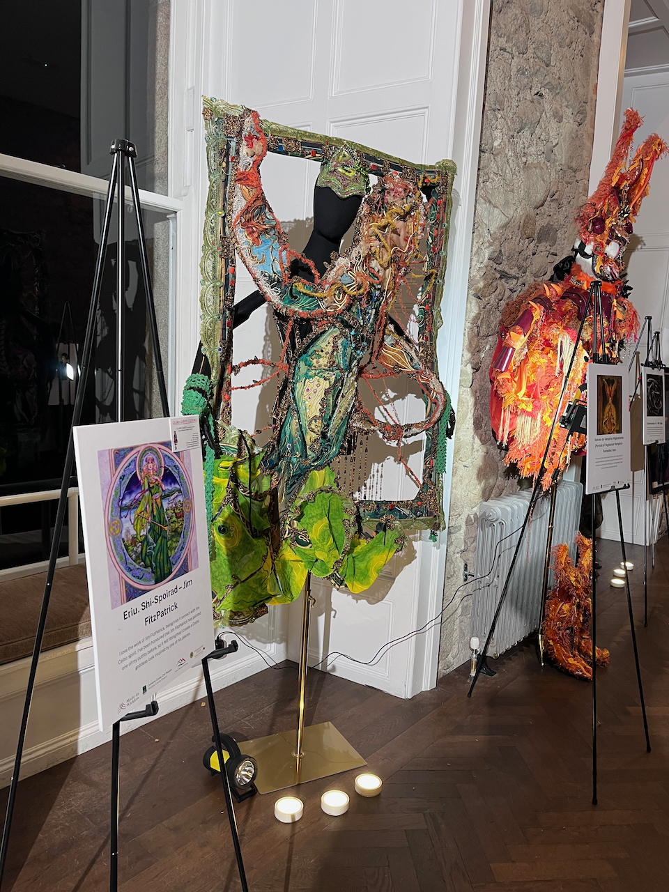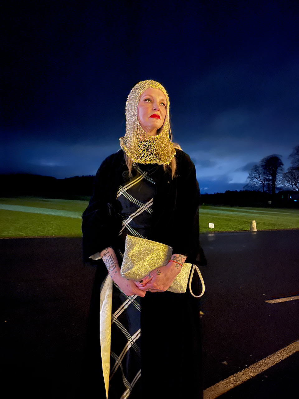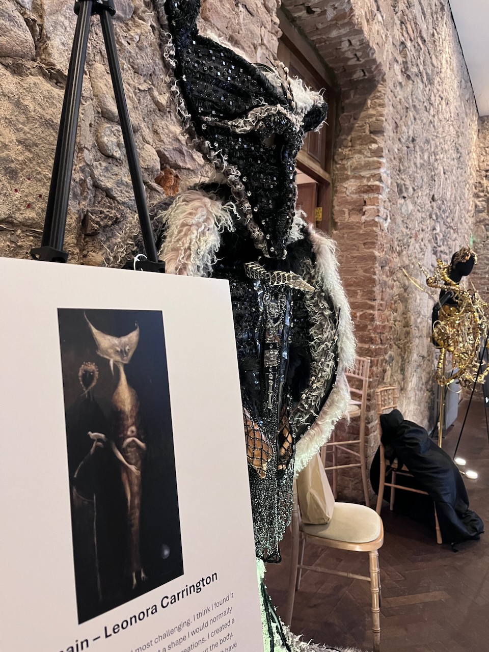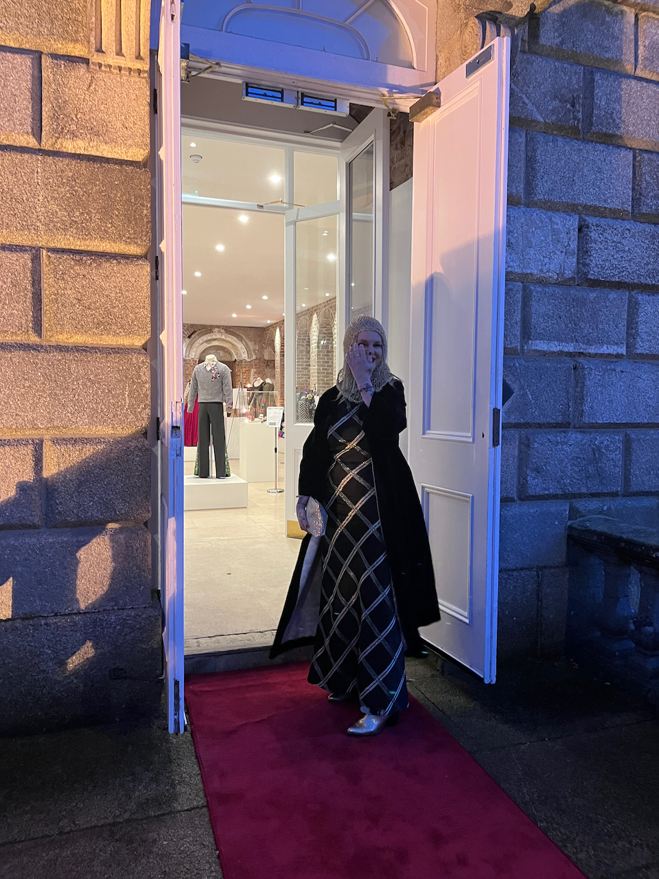 In between, S and I headed out for the night on Saturday. It was the launch of an exhibition of ‘wearable art’ from Irish fashion designer Claire Garvey. The venue was the rather salubrious Powerscourt Estate in Enniskerry, owned and managed by the Slazenger family. Many moons (and a few Orion’s Belts!) ago, I went to art college with Claire back in 1987. She has gone on to great things. Famous folk who have worn her outfits include Lady Gaga and Nile Rodgers. Her stuff is amazing, though I wonder how you could possibly get into an outfit without a coterie of nimble-fingered helpers. Or indeed, in some cases, perhaps one of those gizmos knights used to get into their armour. Live music on the night was provided by the mesmerising Sexy Tadhg. Lots of glam, as you would expect, and plenty of fine gúnas.