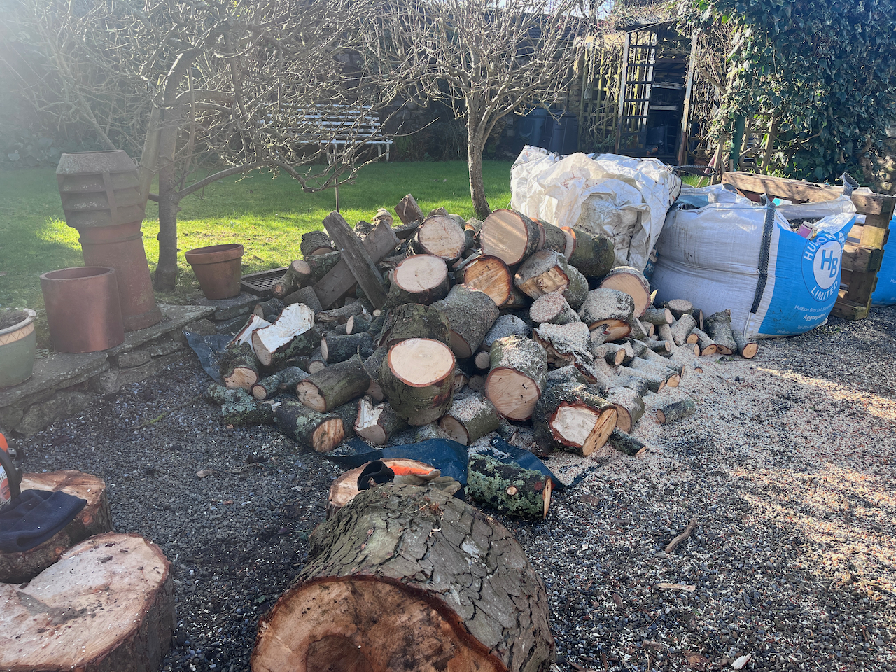 It had been a busy weekend, so I was pleased I managed to get out at all. I rose early on Saturday and headed out to borrow a mate’s truck. Off to Lucan to meet a guy who was clearing some fallen trees. A few hours of chainsaw work and I had a good load of Horse Chestnut boughs, branches and few rounds which are handy as chopping blocks. Then over to Maynooth to get a few scoops of dried logs for the fire. The chestnut is for next Winter. Sunday was another early start, and I stacked the ash logs for burning, and split most of the chestnut.