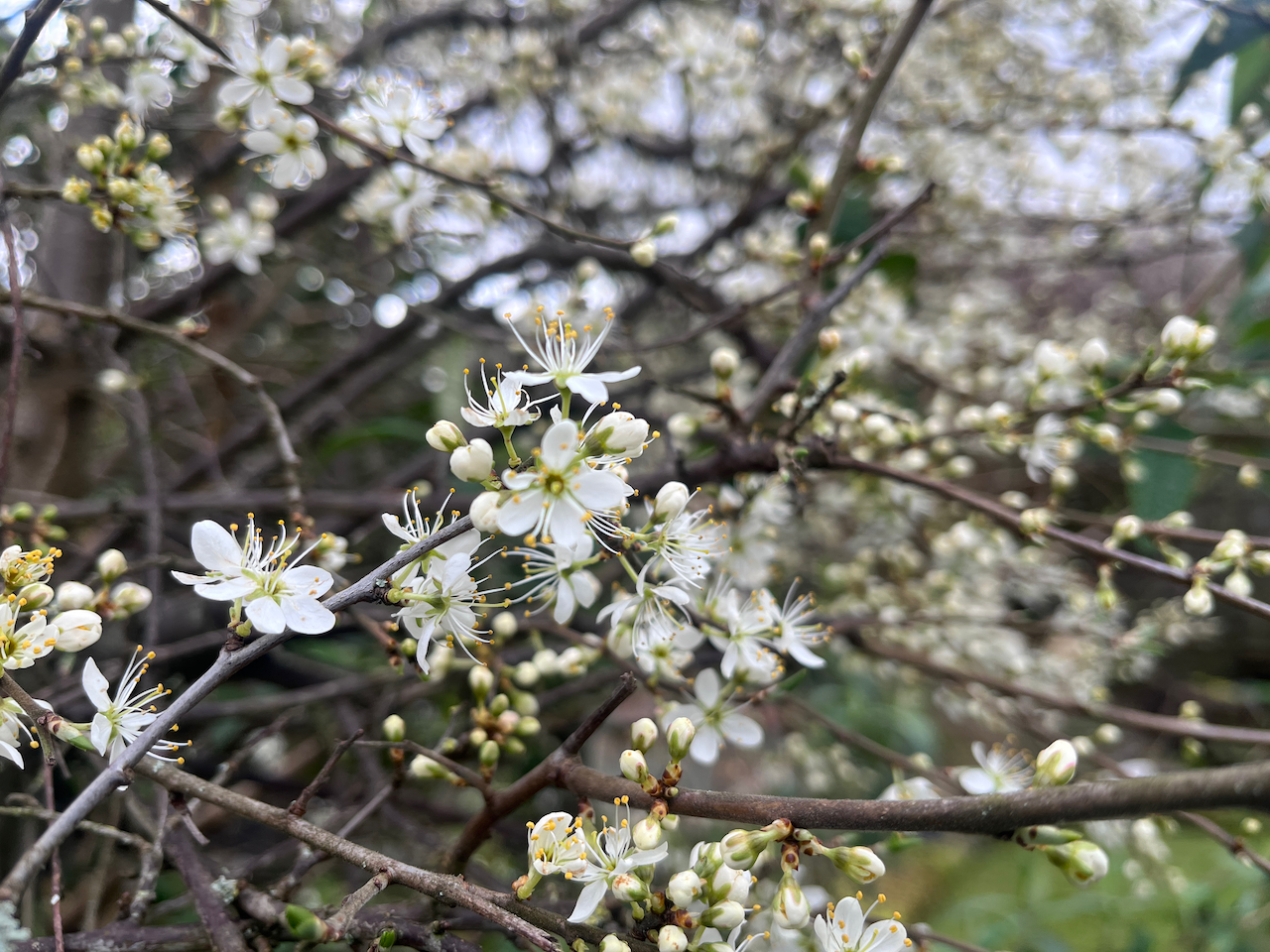Worth noting we are pretty much at Vernal Equinox, so it’s all good, my friends. If you can ignore the global warming, genocide and rapid plunge into fascism around the globe. My advice? Check out the Blackthorn blossoms. Altogether more delicate and less showy than their May flower cousins. Though their thorns guard their fruits more savagely, it must be said. You will have to fight for your sloe gin.