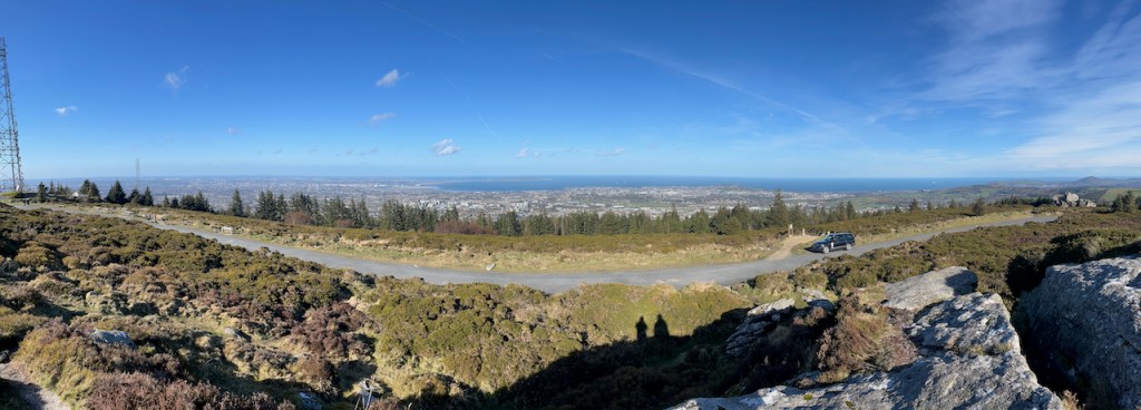 But today (Sunday), we did venture up to Ticknock in the Dublin Mountains and managed a decent 8k of a ramble from the car park and up around Fairy Castle and Three Rock, stopping off to pay our respects to Dad, whose birthday is the 27th March. Ferociously windy up top, but also very sunny, so we both have a rosey glow to show for our efforts; a magnificent combination of wind and sunburn. And of course, we stopped off in the Blue Light on the way home. And I I have a sneaky feeling we may have to visit the Salmon Leap Inn one more time this evening…